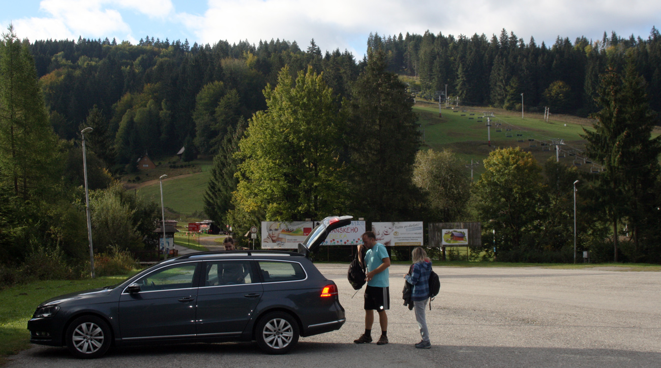 A tak sa veziem ako pán, z BB domov do Turca, v piatok netypicky už o ôsmej ráno. Jeseň už beží naplno, ale sa ešte naplno nevyfarbila. Ani obloha nie je „čistý plech“, ale to sa hádam rozíde... Dúfame všetci štyria. Milan to dobre vymyslel, berie dve kamošky, tak sa mu hodím, aby nad ním nemali prevahu :-)