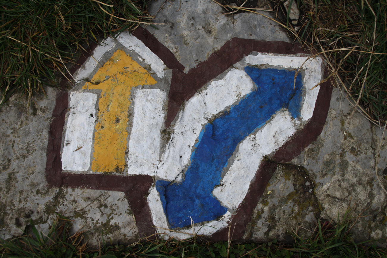 Asi v polovici výstupu vyliezame spod korún stromov na zarastajúce lúky - pribúdajú výhľady do diaľok, ukazuje sa Kľak, Choč, vzadu Martinské hole a tak... Auto sa kúsok pod vrcholom otočilo, asi boli poľovníci po dákeho picnutého zvera. Ani dve hodky nám to netrvalo a sme hore. Trochu fučí, slnko len chvíľami vylieza, svetlo také šedivé, ale mraky vysoko, vidno ďaleko. Pomrvíme sa okolo smerovníka a zima nás poháňa dole. Teraz pre zmenu po žltej, tade je zostup krajší, s výhľadmi do kotliny priamo pred nosom.