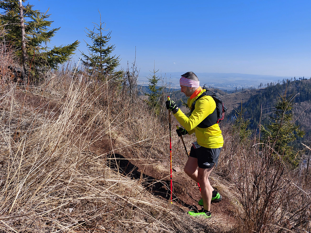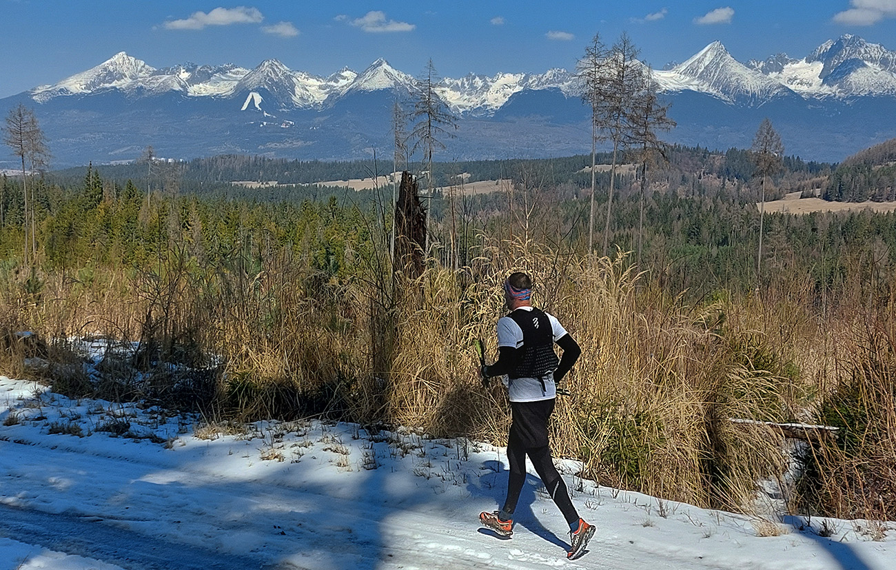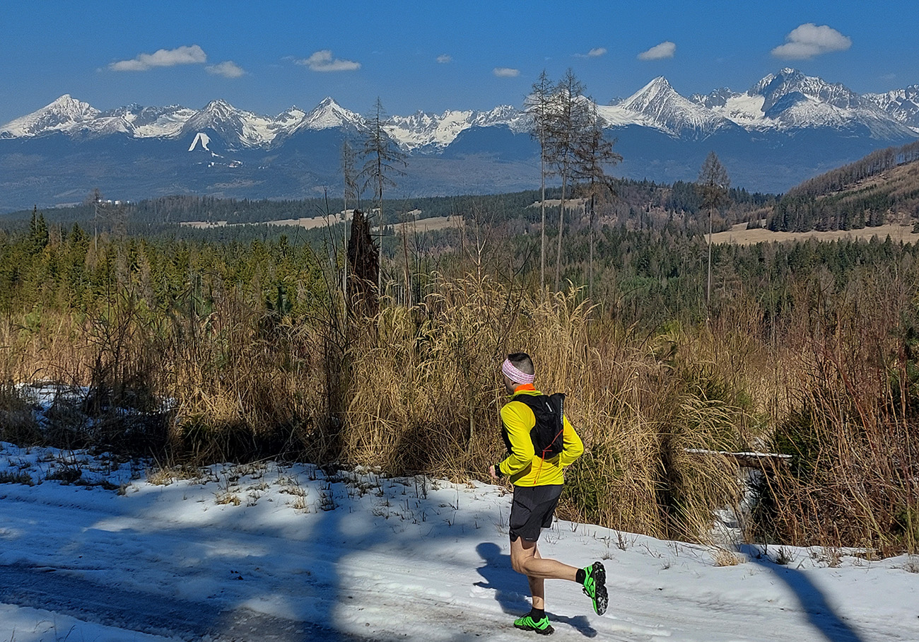 Zima bola zrušená aj tento rok, ale na rozdiel od minulého sa Perinbaba trochu prebrala z letargie začiatkom marca a čosi prisypala, takže na trati to bola miestami aj zábava. Prekvapko hneď na úvod, v tieňoch pod lesom, pár metrov po štarte – čistý ľad. Potom prvý dlhší kopec rýchlo roztriedil bežcov podľa výkonnosti a narobil vláčiky. Až po prvú občerstvovačku krásne, prevažne suché lesné chodníky, mäkko pod nohami a raz hore, raz dolu. Sem – tam výhľad na Tatry. Podklad podľa orientácie svahov, takže všeeeetko – aj zmrznutá hlina, aj blatko, aj sneh, aj ľadíky miestami, ale málo.