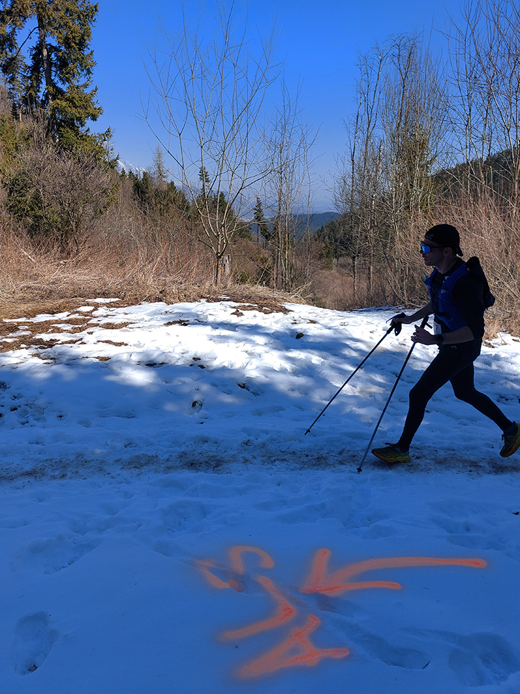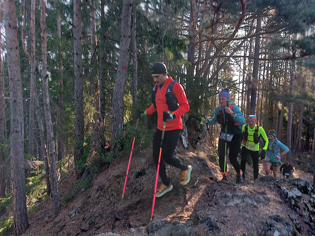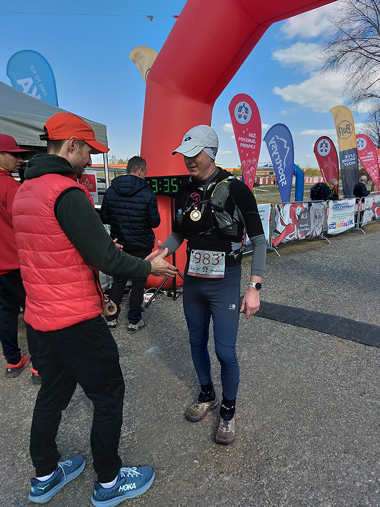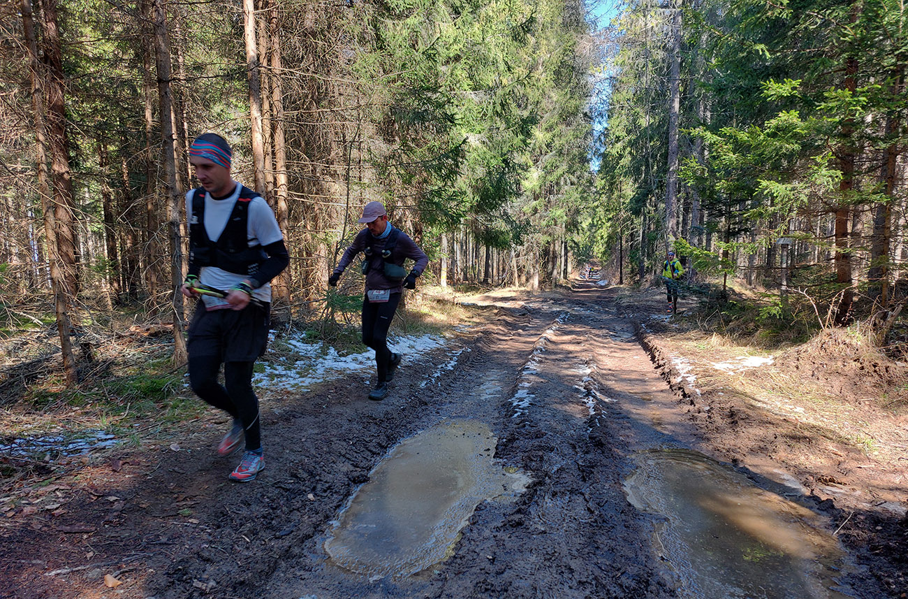Zima bola zrušená aj tento rok, ale na rozdiel od minulého sa Perinbaba trochu prebrala z letargie začiatkom marca a čosi prisypala, takže na trati to bola miestami aj zábava. Prekvapko hneď na úvod, v tieňoch pod lesom, pár metrov po štarte – čistý ľad. Potom prvý dlhší kopec rýchlo roztriedil bežcov podľa výkonnosti a narobil vláčiky. Až po prvú občerstvovačku krásne, prevažne suché lesné chodníky, mäkko pod nohami a raz hore, raz dolu. Sem – tam výhľad na Tatry. Podklad podľa orientácie svahov, takže všeeeetko – aj zmrznutá hlina, aj blatko, aj sneh, aj ľadíky miestami, ale málo.