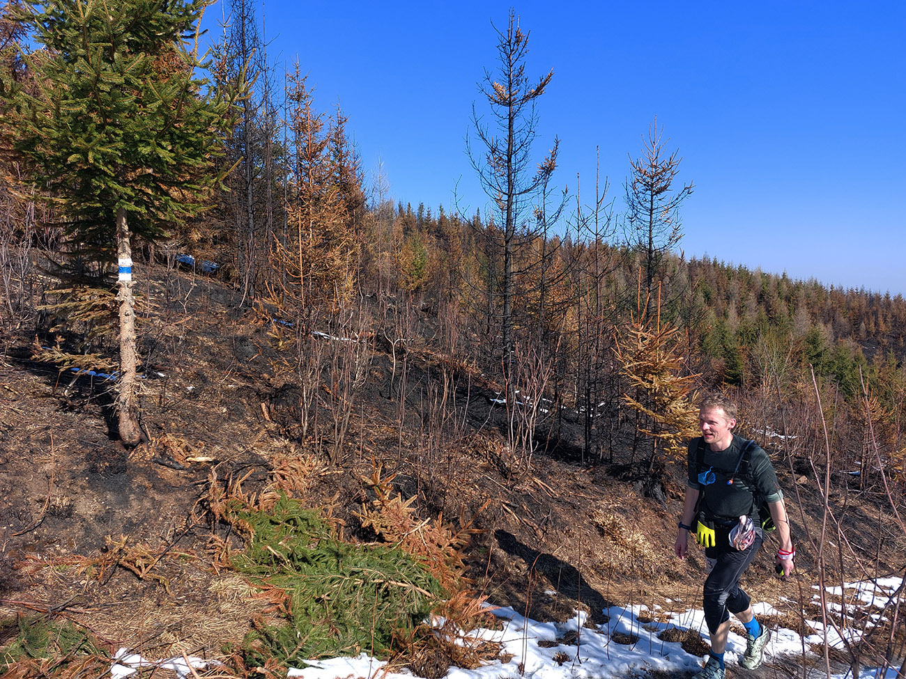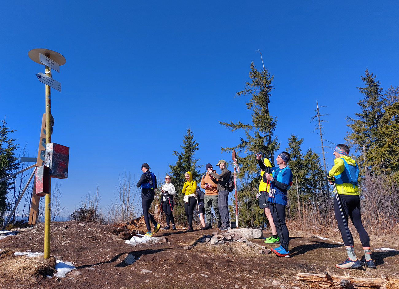 Tretí úsek je viac chodecký – lebo číhajú strmé sklony. Poriadna erotika, lebo všetci dosiahli vrchol – najvyšší na trase (1255 m), po ktorom má tento beh meno. Dospelých lesov aj tu málo, tak zas výhľady, a aj na druhú stranu, kde pózuje Kráľova hoľa. Ako strmo hore, tak aj dole, niekde aj po parádnych snehoľadových šmýkačkách.