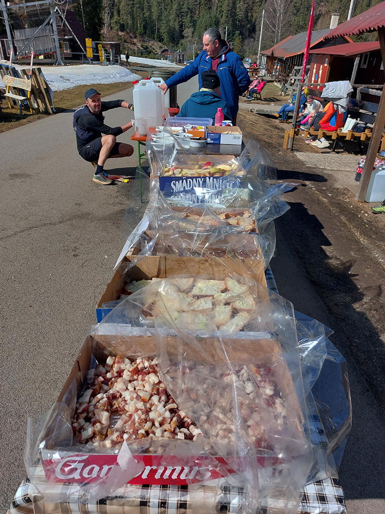Inak výsledné časy bežcov sa dali v cieli odhadnúť aj podľa pohľadu odzadu – tí pomalší mali hnedé bodky na lýtkach, tí rýchlejší na chrbte a machri až vo vlasoch. Ale to bola všetko čistá špina, prírodná. Dobré to bolo väčšinou na tej trati – len cestári to miestami pobabrali. Chceli bežcom isto uľahčiť, tak tie cesty posolili (Veď treba aj minúť prebytky zo slabej zimy, že?), no zjavne to prehnali. Lebo niekde sa toho bieleho strašne veľa váľalo, až sa šmýkalo. Vraveli síce niektorí, že to pod nohami bol sneh, ale tomu hádam u nás už nik neverí. Takže kto bude chcieť suchou nohou aj budúcu sezónu zahájiť, do Kozích chrbtov treba prísť behať!