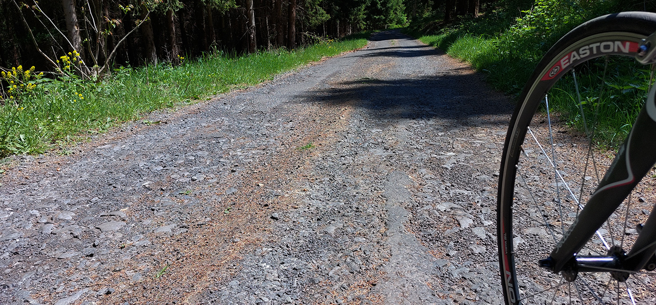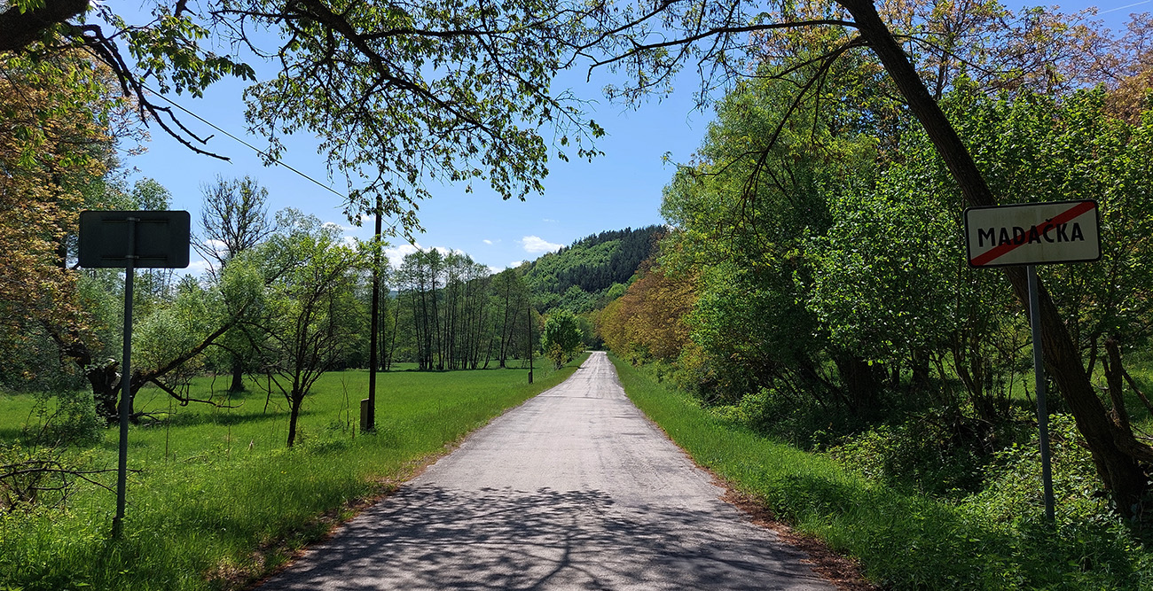 Každopádne za tou križovatkou začína pre mňa nový cyklistický kraj, vždy som zatiaľ došiel len potiaľto. Krajinka tejto „náhornej planiny“ je pekná, asfalty výborné, výhľady ďaleké. Aj preto sa mi nechce až dole do Šule zavretou dolinou fičať – vymyslel som si, že to skúsim obabrať cez Madačku do Nedelišťa, po bočnej ceste pomedzi lazy. Tabuľa ukazuje 13 km, to prežijeme aj po šotoline, keby niečo. Nečakám zázraky pod kolesami, napriek tomu ma príjemne prekvapuje nový asfalt. Ale neradujem sa predčasne a dobre robím, lebo asi po troch kilákoch rozprávka končí a začína niečo ako Paríž – Roubaix, ibaže s hrubým makadamom a výtlkmi namiesto kociek. Nový asfalt sa ešte sem – tam zjaví, ale taký vlnkovitý, akoby len lopatou uťapkaný. Slabá snaha zakryť najhoršie úseky, ale aj tá poteší. Zimného posypu sa tu tiež váľa ešte dosť, takže opatrne.