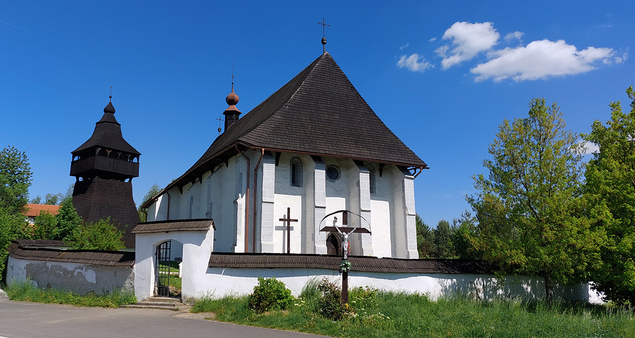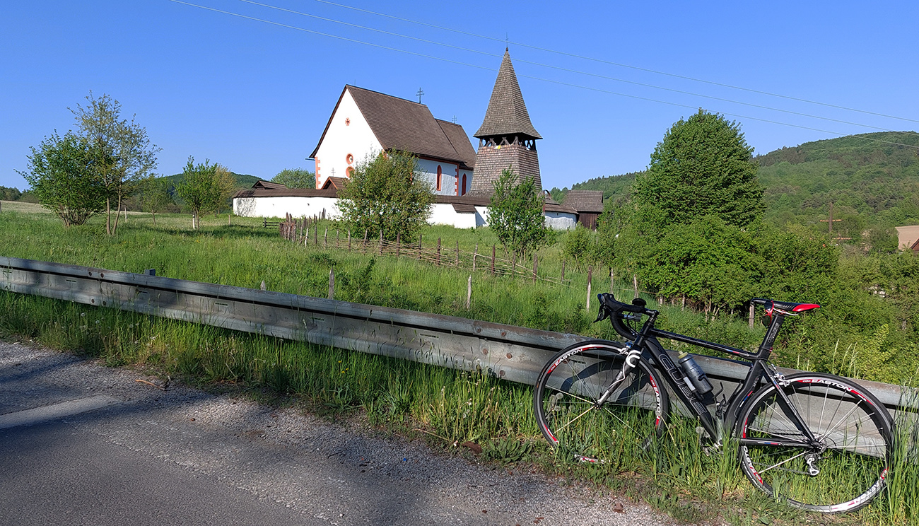 Nazad to bude prevažne proti vetru, tak do brucha padá ďalší sójový valček. Onedlho teda už hrkocem dole lesom a rútim sa v ústrety zámku. Halič ale len líznem okrajom. Aj rozmýšľam, či načapovať na cintoríne, ale je tam nejako veľa ľudí, pôsobil by som asi nepatrične. V Starej Haliči stúpam popri krásnom, zrenovovanom kostole a obzerám sa po nejakej krčme, ale nikde nič. Bodla by podpora, lebo idem dlhoooo stúpať, cez Tuhár až za Budinú. Aj sa definitívne otáčam proti vetru, aj asfalt poriadne zdrsnieva, tak zas malá píla, ale našťastie les je blízko. V doline hádam až tak fučať nebude.