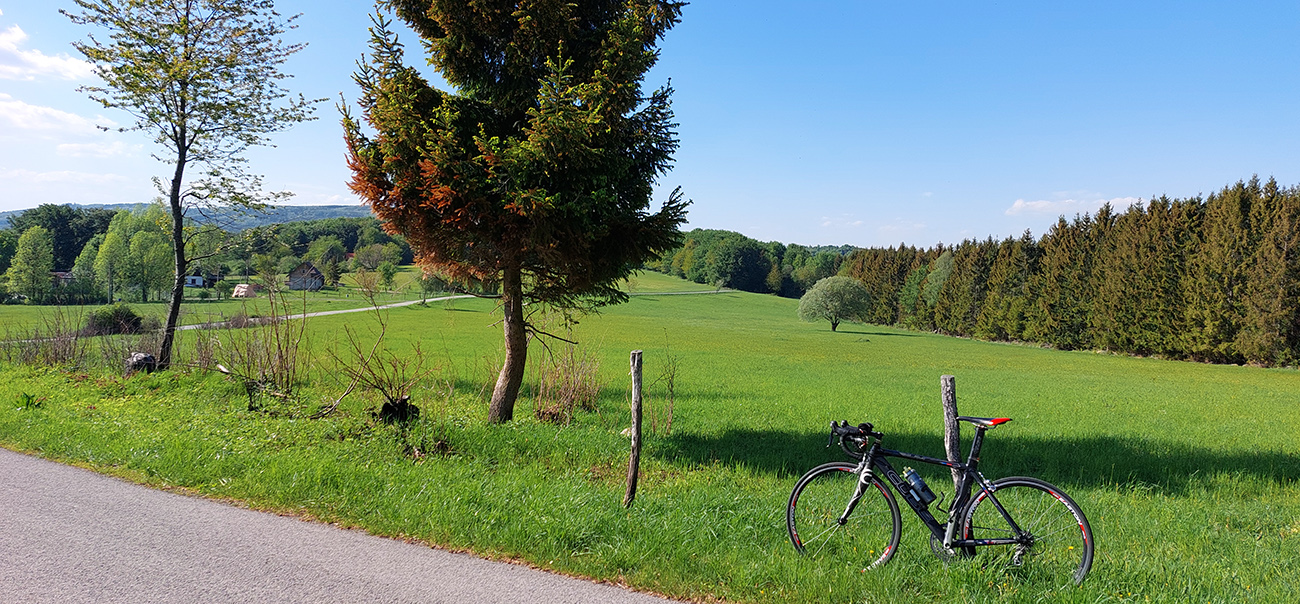 Začínam dlhočizný zjazd, až do Detvy ku stanici, poriadne svižných 13 kilákov pomedzi lazy. Na začiatku sú v ňom síce zakomponované ešte zo dva malé, jedovaté brdky, ale celkovo je to nádherné jazdenie otvorenou, panoramatickou krajinou, aj keď asfalt tu hore nie je ktovieako hladký. Zato výhľady až niekam k Veľkej Fatre, nižšie obchádzam Budinskú skalu a pri vytriasaní muchy spod prilby obzerám, kade som sa tu motal na jeseň.