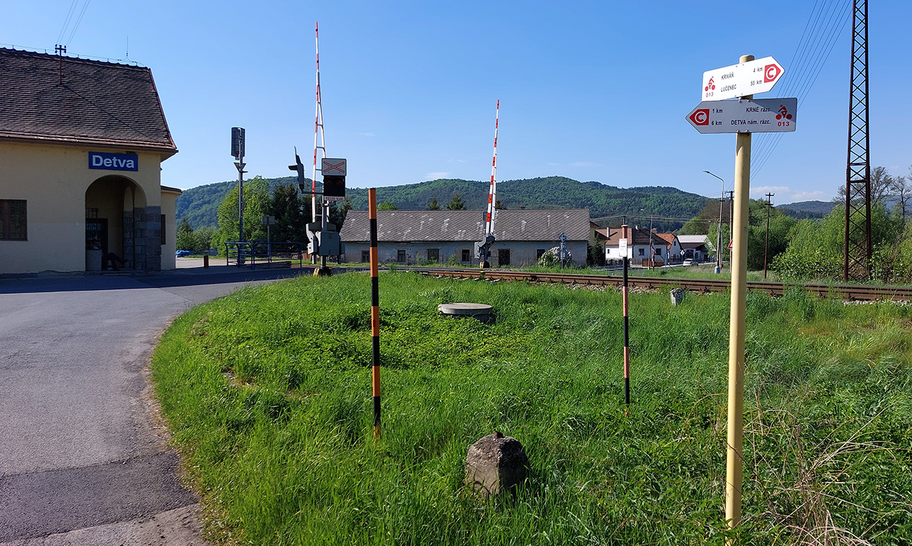 Nakrátko sa pripájam (smerom doprava) ku hlavnej ceste do Podkriváňa - doľava by som došiel zase k tej fašistickej križovatke. V tejto rozhľadovej krajinke by hádam ani everesting nenudil. A podklad znovu výborný, netreba na výtlky moc striehnuť. Ani po odbočení z hlavnej – mierim k železničnej stanici v Detve, cez Piešť. Zdola postupne silnie hukot tej našej autocivilizácie. Až si závidím, ako sa mám fajn, že to auto nepotrebujem :-)