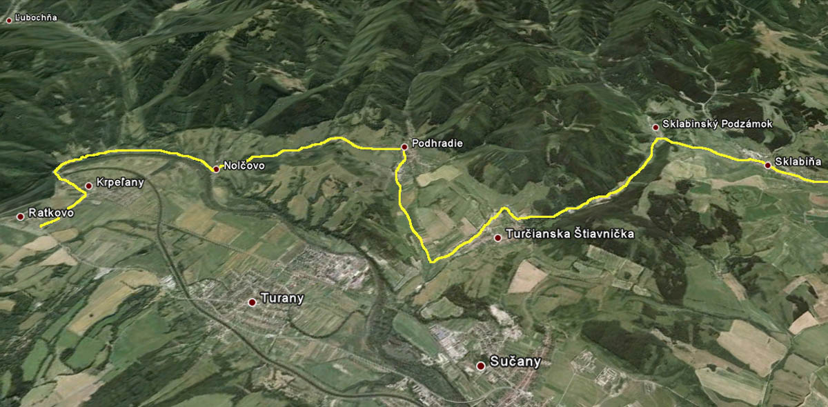 Jedna pekná a hlavne málo frekventovaná cesta vedie východným okrajom Turčianskej kotliny, podhorím Veľkej Fatry. Dostala meno podľa svojej dôležitosti pri zásobovaní partizánov, aj keď už v stredoveku tadiaľto vozili meď z Bystrice do Krakova. Na juhovýchode kotliny sa odpája od hlavnej cesty Banská Bystrica – Martin pod Šturcom (pri ústí Žarnovickej doliny), na severe sa napája na hlavnú cestu z Martina do Ružomberka pri Ratkove. Takto má asi 52km a pretože hlavná cesta vedie stredom kotliny, je to tichá, ale preparádna asfaltka. To aby tu bolo čosi aj pre tých, ktorí radšej tenšie kolesá – navyše v jej severnej časti medzi Sklabinským Podzámkom a Krpeľanmi pribudli nedávno kilometre nového asfaltu, takže tam je hladká ako detská prdelka, hoci zároveň aj najužšia. Hlavne cez víkendy sa to na nej cyklistami len tak hemží - najviac okolo Turčianskej Štiavničky a Gaderskej doliny. Cesta je podstatnou časťou červenej „turčianskej cyklomagistrály“ (55km), ktorej profil je v galérii – aj s odbočkami do obľúbených veľkofatranských dolín. Tie sú ale svojim povrchom vyhradené minimálne pre krosové bicykle. Pre „žiletkárov“ je od vlani čerešničkou na torte nový čierny koberec na najsevernejšej odbočke z tejto cesty - z Nolčova do Veľkej doliny. Je to asi 6-kilometrový výživný kopček v tieni úzkej a strmej doliny, popri potoku, ideálny na tréning kopcov v sparnom lete. Len či po lesákoch už nie je na ceste viac hliny ako asfaltu?