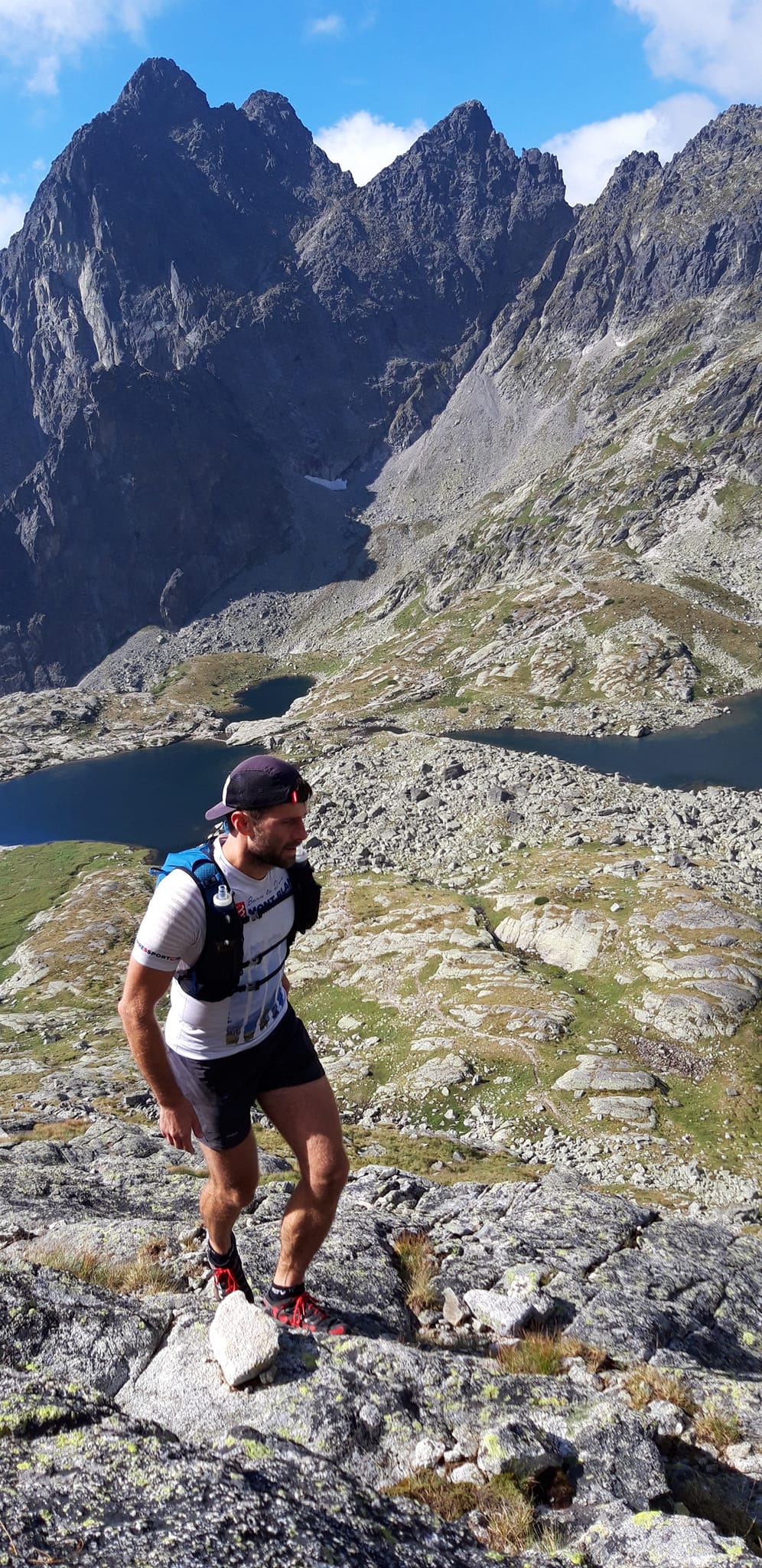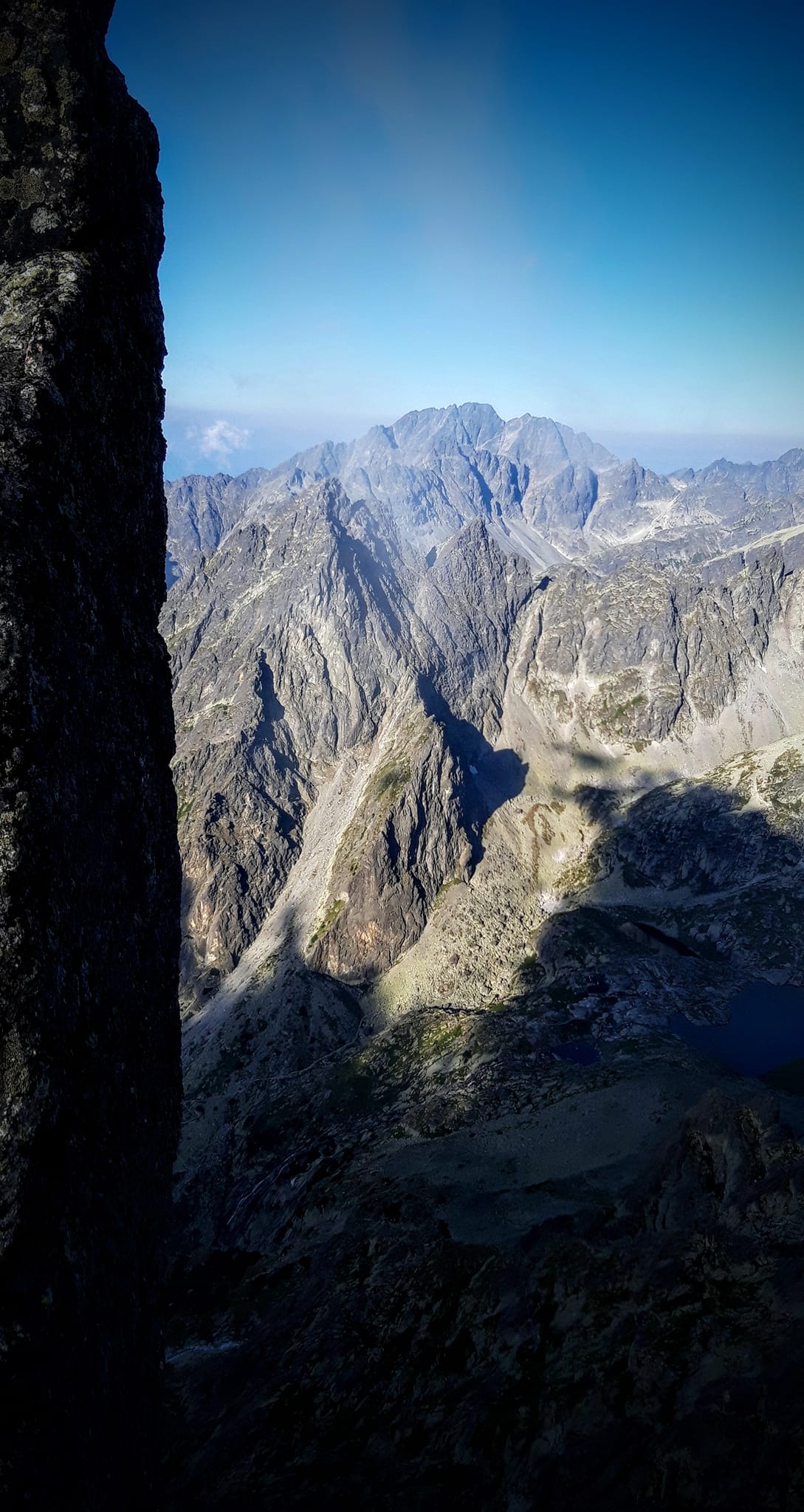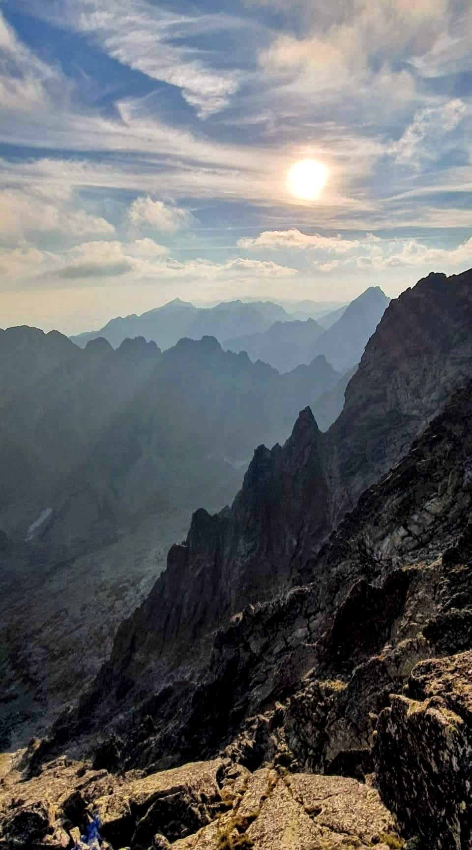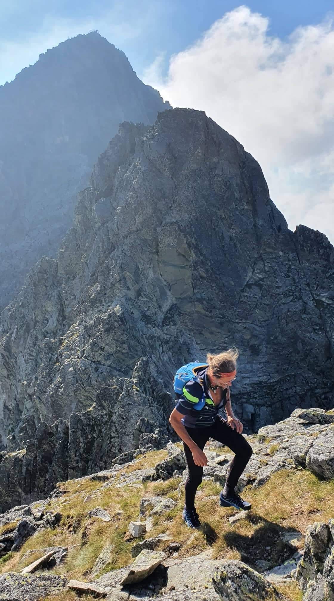 Konečne Gerlachovský štít . Kocháme sa výhľadmi . Pri pohľade na Lomničák nechápem ,ako som sa mohol odtiaľ dostať až sem . Keď však zbadám čo nás ešte čaká, prestanem sa rozplývať. Táto časť hrebeňa sa lezie veľmi málo. Musím sa nenormálne sústrediť, hlava mi už úplne vypína . Všade samé machy ,samé lokre . Stačí vybrať jeden osudový loker a čauky. Zachrániť ťa môže už len orol skalný ,ak ťa stihne zdrapiť do pazúrov pri voľnom páde. Gerlachovská veža (9) a konečne DESIATY - Kotlový štít. Tešíme sa ako malé deti .