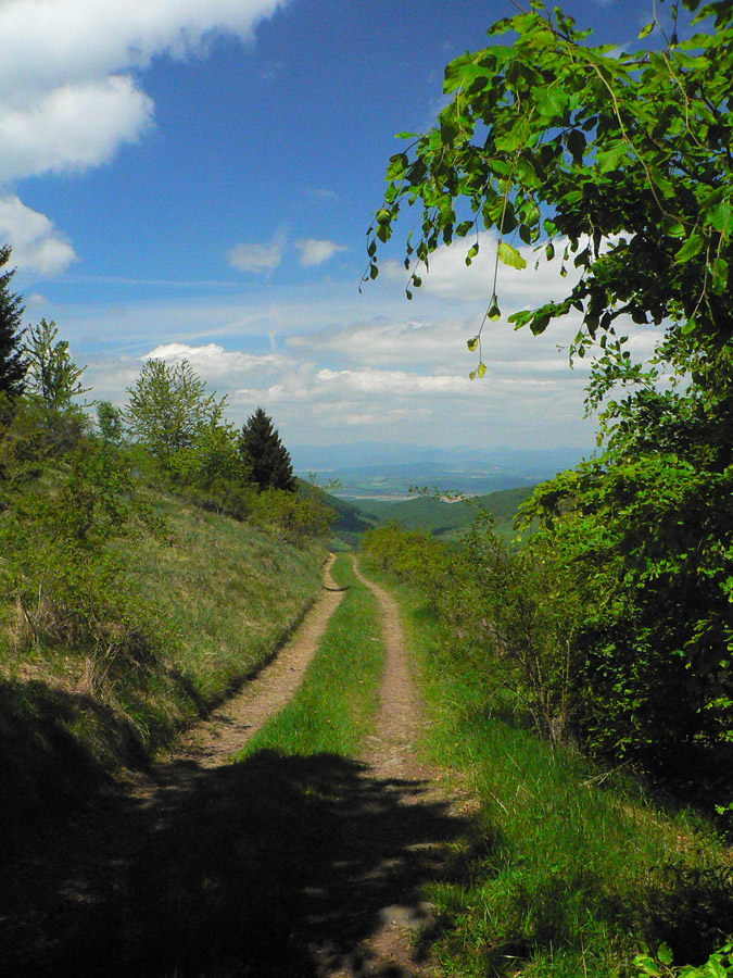 Sopečné Javorie - to sú na severe lesy, na juhu mozaika lúk a lazov - na mape to vyzerá vééééľmi pekne. Niečo viac ako 40km bude dlhý ten dnešný okruh - to je síce trochu moc na dennú turistiku, ale tak akurát na ľahký indiánsky beh, pre niekoho „hopsoklus“ v maratónkach. A posledná zúfalá možnosť nahnať nejaké tréningové kilometre pred prvou stovkou sezóny (ktorú som nakoniec radšej vynechal). Vystriedam všetky farby „turistického spektra“, lebo začnem na žltej medzi Zvolenom a Zaježovou, tam odbočím na červenú po rázcestie Polomy, zbehnem po modrej do Kalinky a do Zvolena sa vrátim po zelenej ponad dolinu Sekier. Z mapy je to asi jasnejšie. Tie dva krátke úseky (v polovici žltej a pred koncom zelenej), kde som radšej išiel mimo značiek, sú vybodkované: