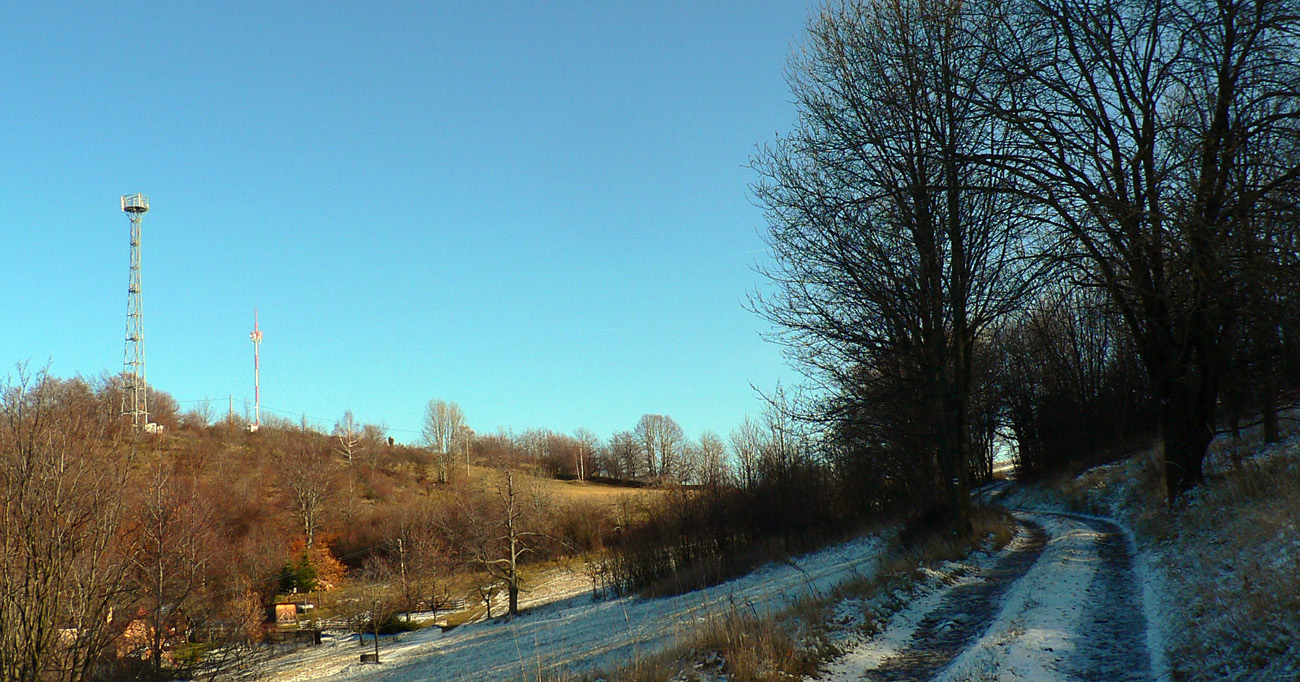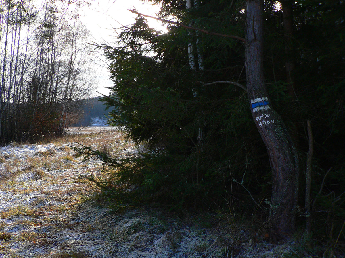 No a tu začalo to najlepšie dobrodružstvo. Stúpam po jednoznačnej lúčnej ceste. Križovatka, samozrejme neoznačená. Skúšam jeden smer, druhý, nič! Čas tlačí zas o trochu viac, pomôže len návrat ku smerovníku. Od neho zas rovnako - jedna značka, druhá, veď len po tejto ceste sa dá, po ktorej som už išiel... Obzerám sa pri poslednej značke, kde je v mojom smere ďalšia, a ona zrazu niekde hlboko v kroví vľavo od cesty. Tade??? No vleziem tam - a ozaj. Trepem sa zarasteným starým úvozom pomedzi lúky. Pred mesiacom, keď na stromoch ešte bolo lístie, nemal by som šancu! A to sranda ešte len začína. Nasleduje zostup, väčšinou hustým lesom alebo rúbaňami, samozrejme bez chodníka. Pod nohami konáre, niekde ako naschvál. Strmé spádnice, okraje zrázov. Našťastie značky svietia hádam z každého desiateho stromu. Ale aj tak musím často zastaviť a hľadať smer k ďalšej. Nakoniec sa vynáram pri osade Krátkovci, ufff. Už len krátka serpentínka pomedzi domy, pohodová cesta k ďalšej osade (Pastorkovci?) a pred ňou posledná nelogická odbočka - kamsi krížom cez lúku, doprava. Cez horizont a popod elektrické vedenie sa preklápam k najvyššej osade v miestnej časti Piešť II a o chvíľu stojím v širokom lúčnom sedle pod posledným stúpaním na Siroň. A kladiem si otázku, načo bol tento šialený úsek dobrý, keď je tu všade toľko ciest??? Nedovolili vlastníci, lesníci alebo niekto iný kompetentný? Lebo je jasné, že chodník od Sliackej poľany sem je pretrasovaný pomerne nedávno. Doma dokonca zisťujem, že aj na webe (mapy.hiking.sk a mapy.cz) je tento úsek nakreslený inak (v mape som zmenu vyznačil). Možno sa niekto veci znalý ozve, čo to za zmätky...