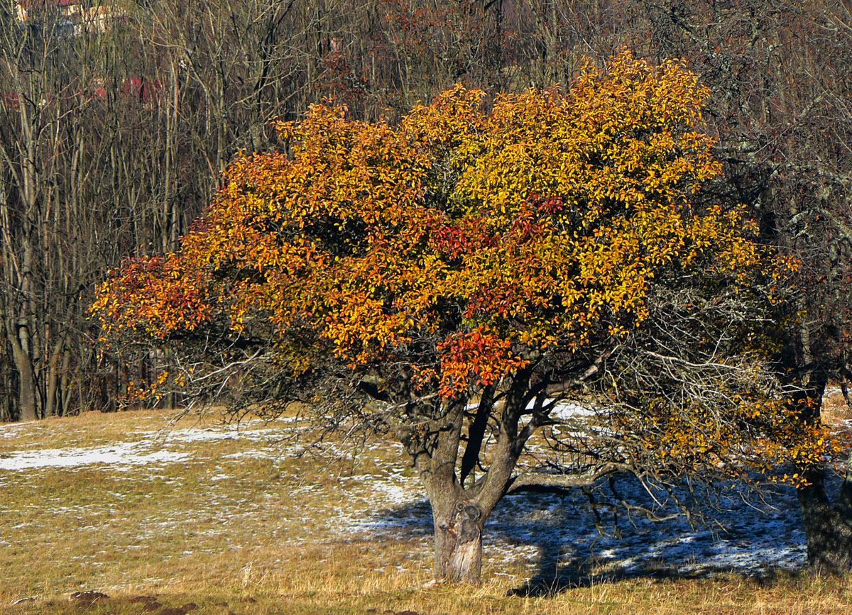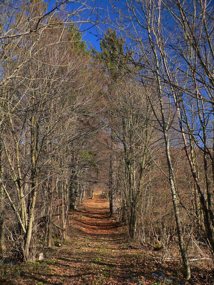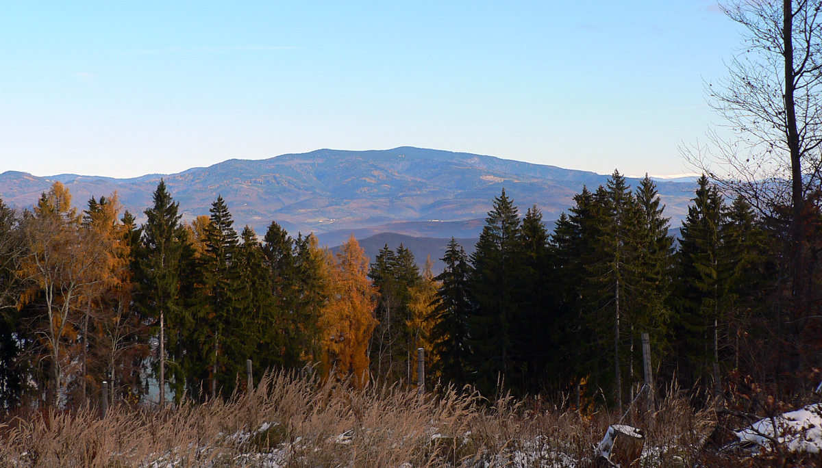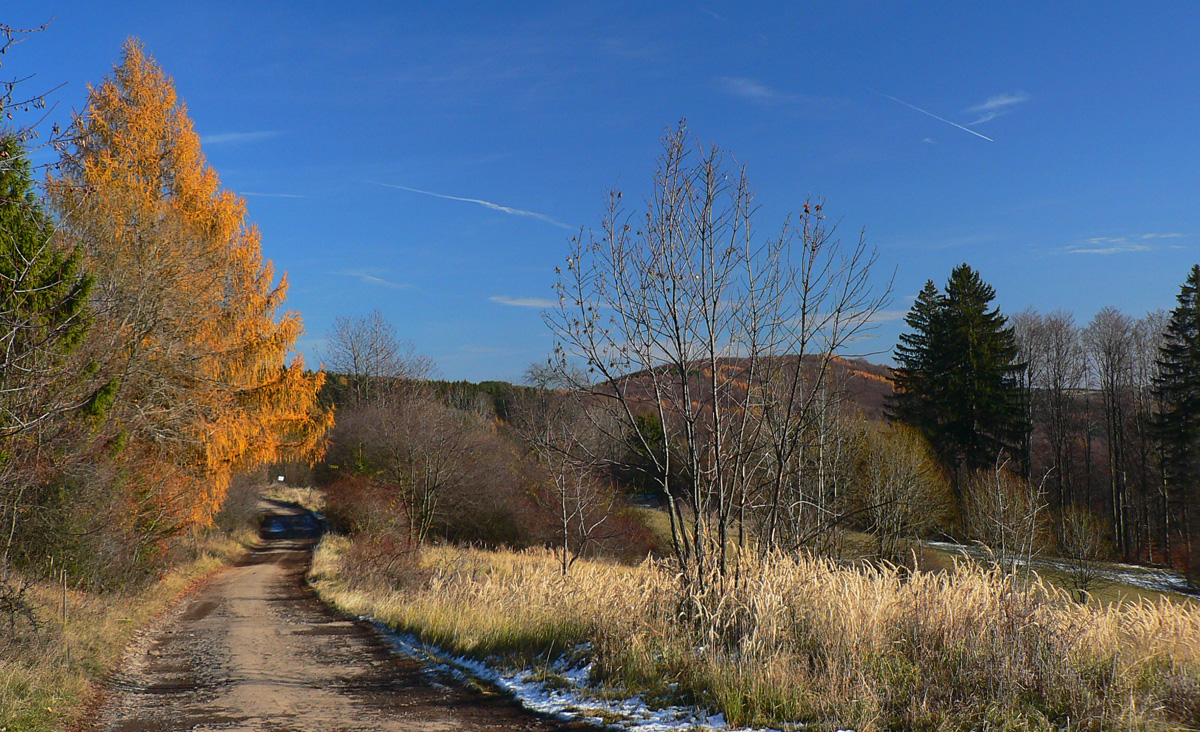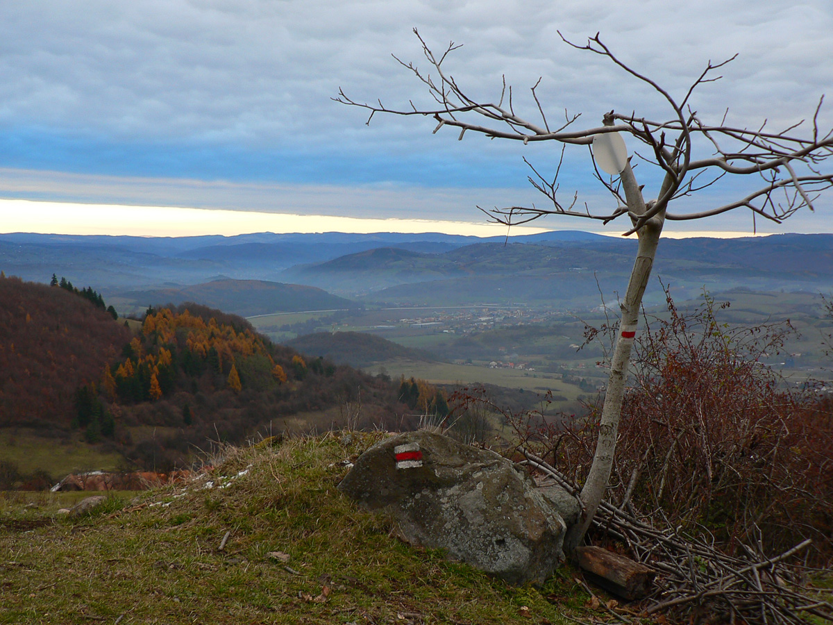 Ráno ako v mrazáku, v dolinách opar a prevaha sivej, ale obloha azúrová, prísľub posledného pekného dňa pred frontom. Vo vyšších polohách už sneh, ale ja som si zmyslel hľadať posledné žiarivé farby jesene len v maratónkach. Takže na juh! Osobák do Zvolenskej Slatiny, so zámerom pomotať sa pomedzi lazy v Javorí: po modrej cez Veľký Korčín a Kalinku hore na Polomy, odtiaľ po červenej „hrebeňovke“ na východ. Skončím buď v Detve alebo v Kriváni, na stanici. Všade sú tu zväčša cesty dobré aj pre bajk, na indiánsky beh tiež ideálne.