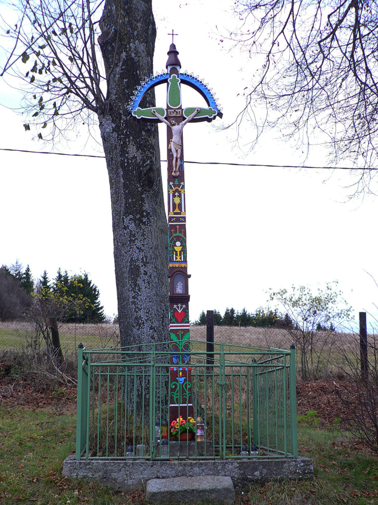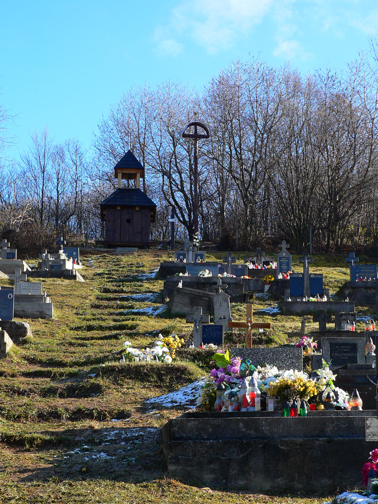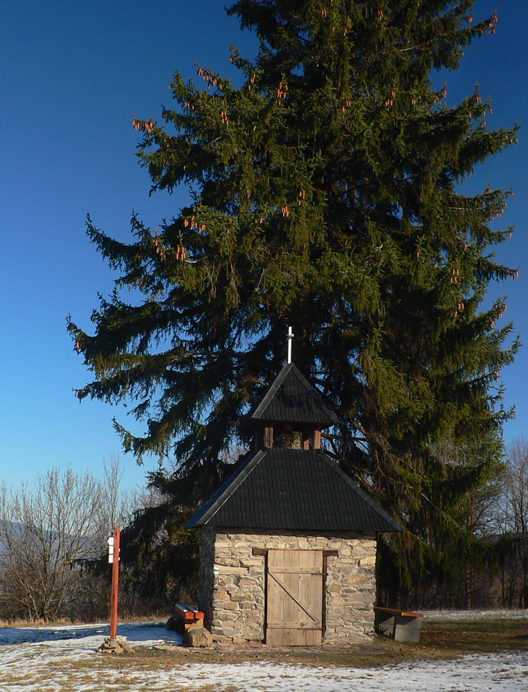 Pretínam hlavnú cestu a poza kostol stúpam k „hrebeňu“ Javoria: pomedzi stále redšie rozhádzané domy, popri televíznom vykrývači a okolo ikonickej zvoničky pri samote Povaľačovci. Ktovie ako to pomenovanie vzniklo... Zvonička je už pekne opravená, až na ten plechový šindeľ... A z lúk nad samotou krásne výhľady: mohutný Veľký Korčín, za ním cez dolinu Poľana a na obzore biele linky zasnežených hrebeňov Veľkej Fatry a Nízkych Tatier: