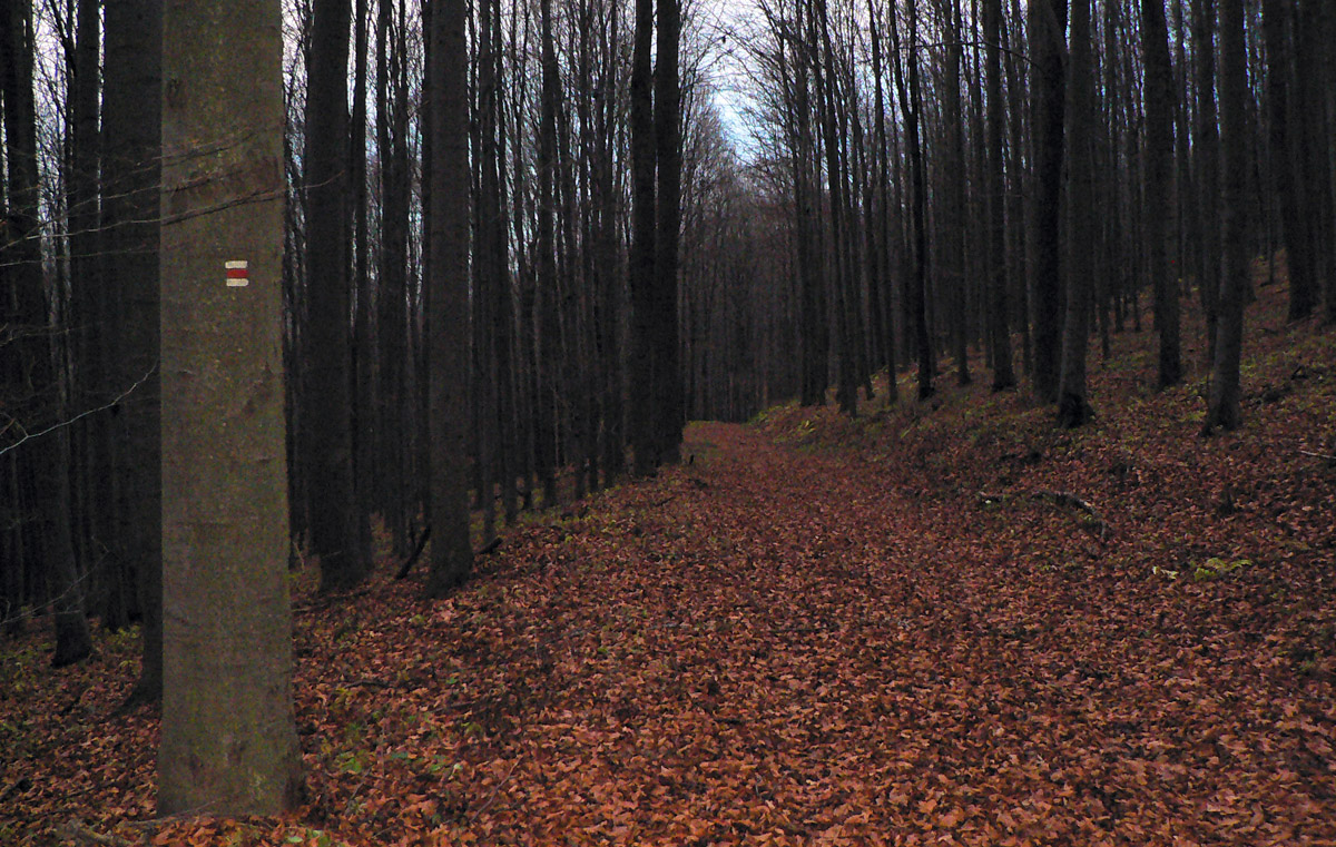 Na úplný koniec už našťastie pohodička - cez Siroň cesta široká, bukovým lístím mäkko nastlaná, a na vrchu pod vykrývačom smerovník ma upokojuje, že zas mám dostatočnú časovú rezervu. Tentokrát až priveľkú, tak cestou dole dúfam, že na stanici okresného mesta je aj čakáreň. No dúfam márne. Už sa zmráka a teplota padá, ale pobehám po okolí a skôr ako rýchlik ide osobák. Tak je to zas v pohode, aj mokré nohy ohrejem na kúrení. A môžem sa tešiť na tri upršané voľné dni v práci...