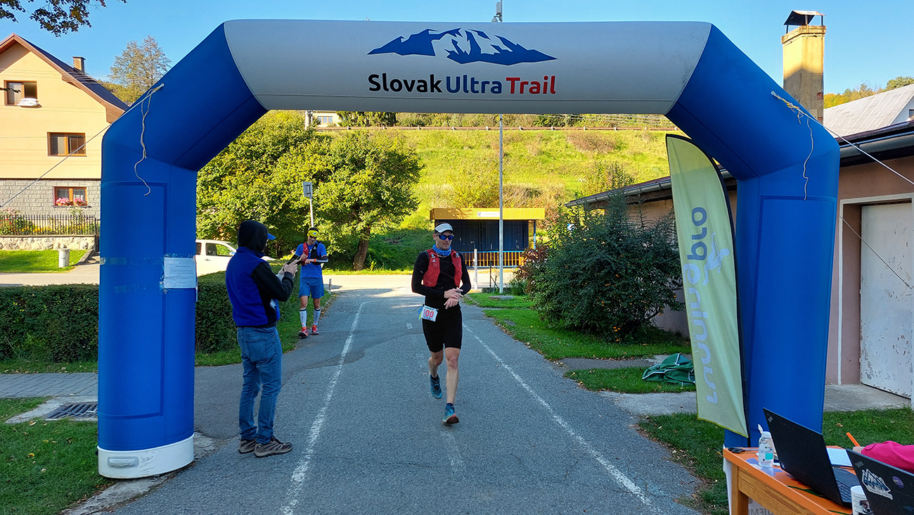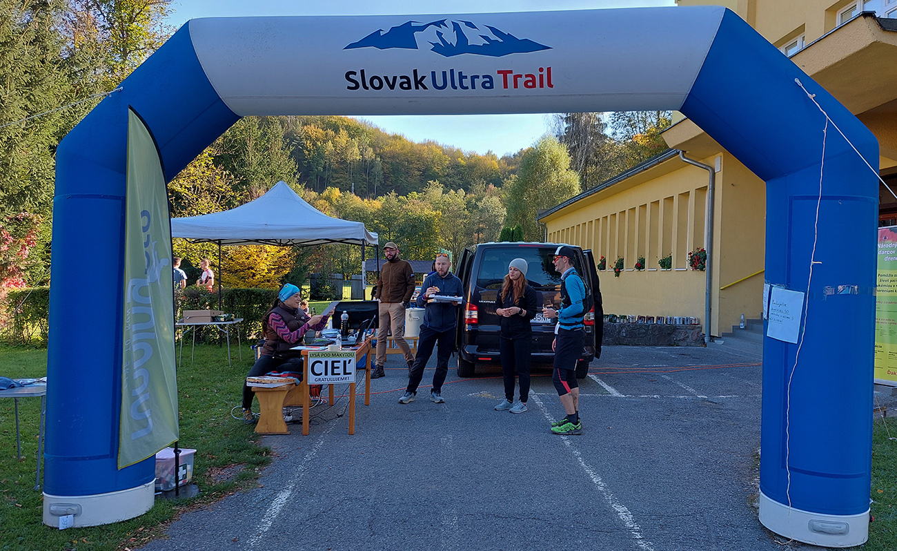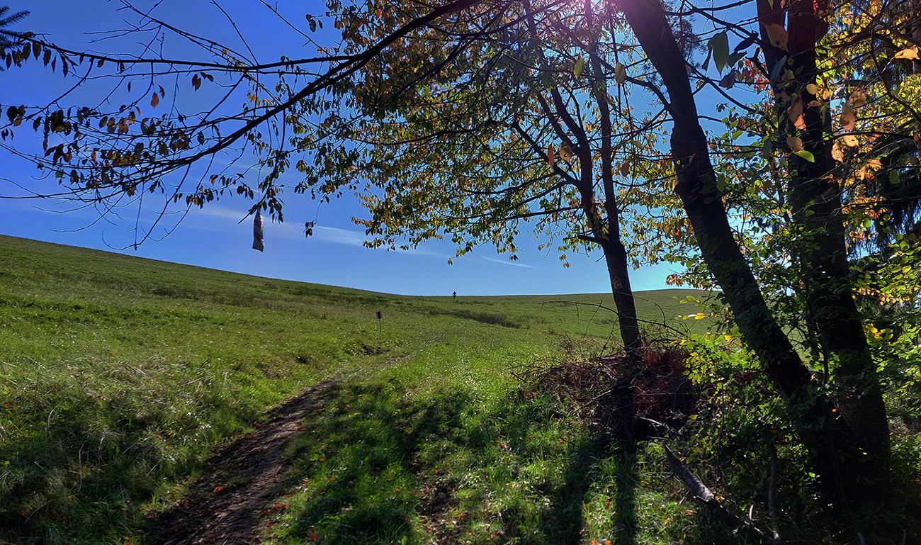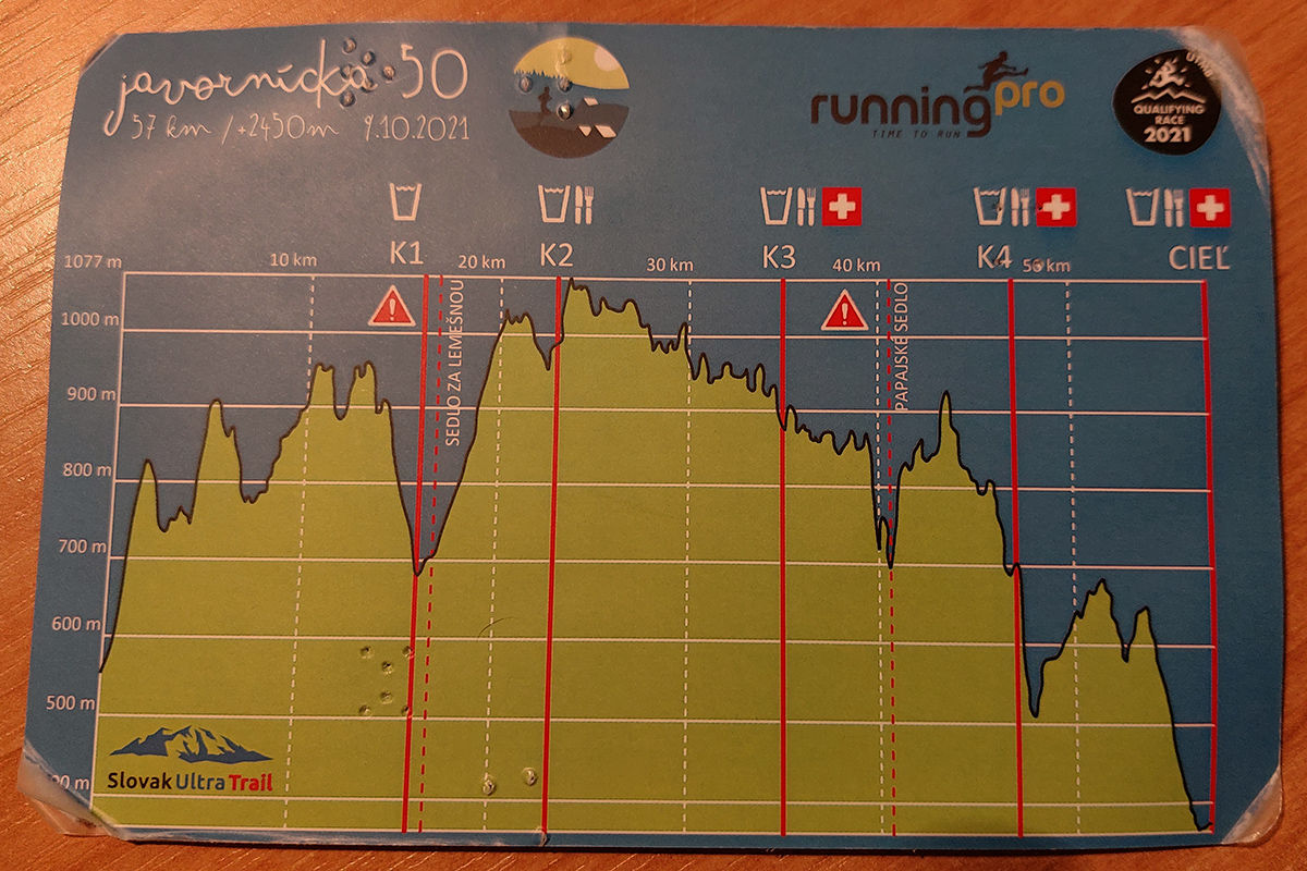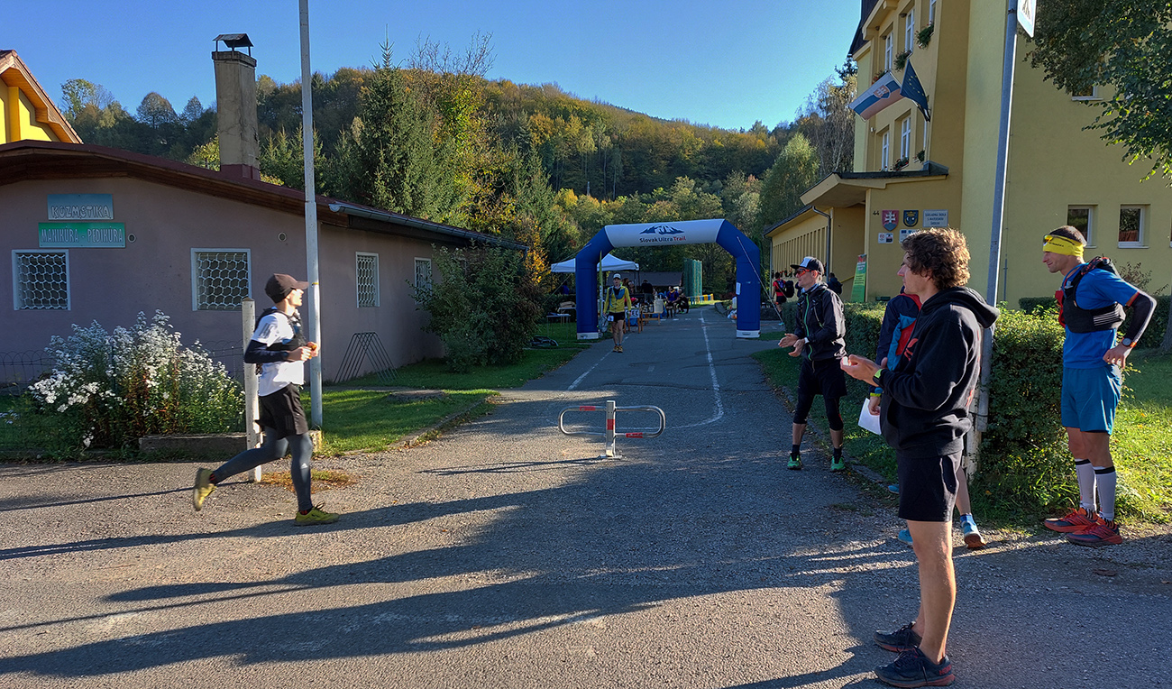 Toto nové a dúfajme, že aj ojedinelé podujatie nám zariadil covid – lebo kto by nááááhodou nevedel, bola to na polovicu (tú druhú) skrátená tradičná J100. Výhoda bola jasná: viacerí skalní účastníci videli záver trasy po prvý raz za svetla. Lebo štartovalo sa až vo Vysokej nad Kysucou, potom sa po žltej značke liezlo (no, aj letelo, ako kto) na hrebeň Javorníkov k Solíkovcom. Tam sme sa napojili na klasickú trasu a po nej až do Lysej pod Makytou. Vydalo to na 57 km, 2450 v.m. a štyri krmelce. Ozaj treba poďakovať organizátorom zo SUT, ktorí napriek zhoršujúcej sa a najmä neistej situácii počas tretej vlny pandémie boli ochotní toto celé v predstihu vymyslieť, pomeniť, zariadiť, označiť a celkovo na vysokej úrovni spáchať. Pre 104 zaočkovaných. Počasie sa im (aj nám) odmenilo: čistá obloha, ostré slnko, len okolo obeda trochu vetra (aj to do chrbta), k tomu plnofarebná, pestrá, októbrová krajina javorníckych cholvarkov. Ráno na štarte síce tráva primrznutá prvým srieňom, no na slniečku sa dalo vydržať aj v kraťasoch. Len niektoré scény pripomínali prírodopisné filmy zo savany – keď sa surikaty ráno vyhrievajú, otočené k slnku :-)