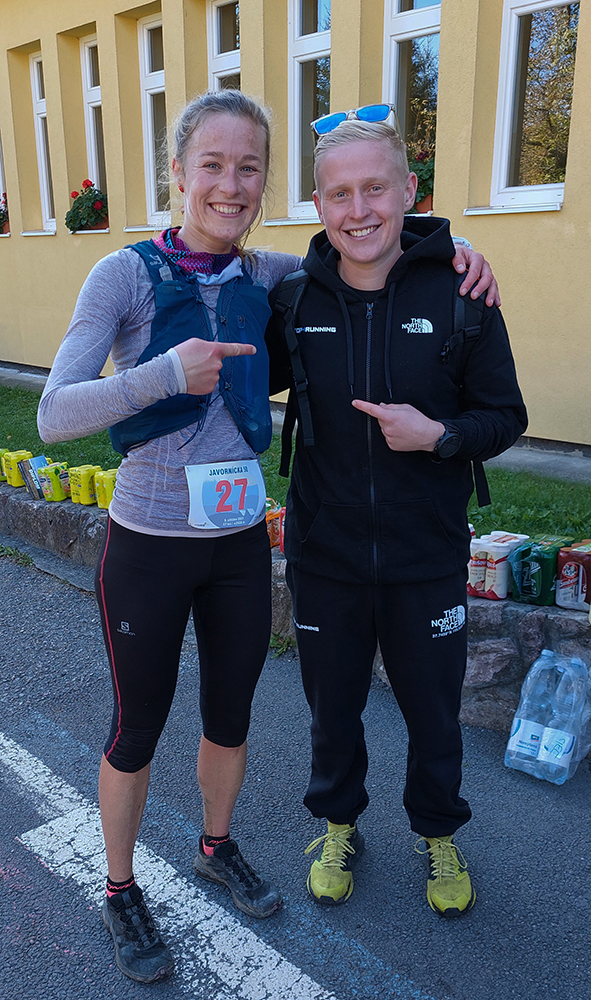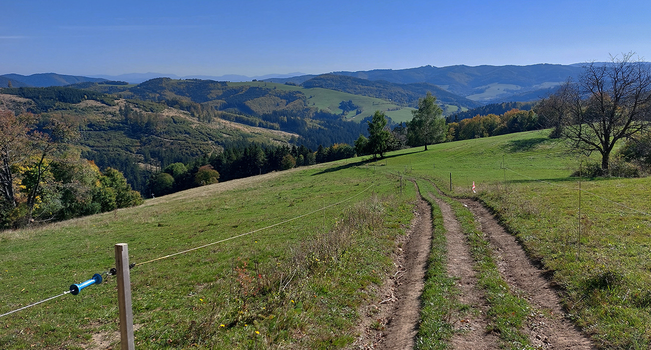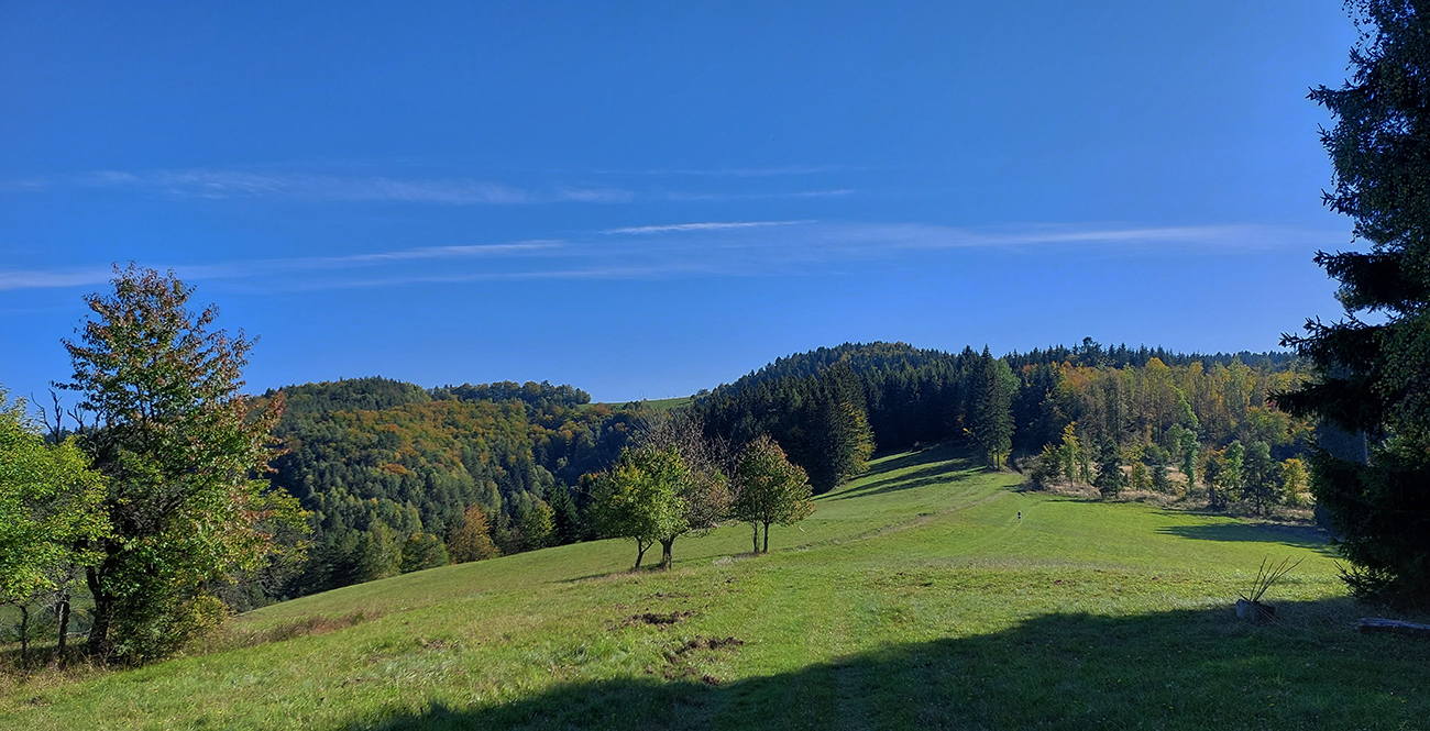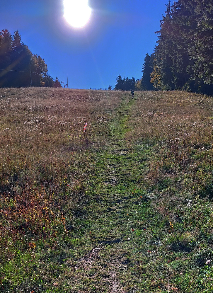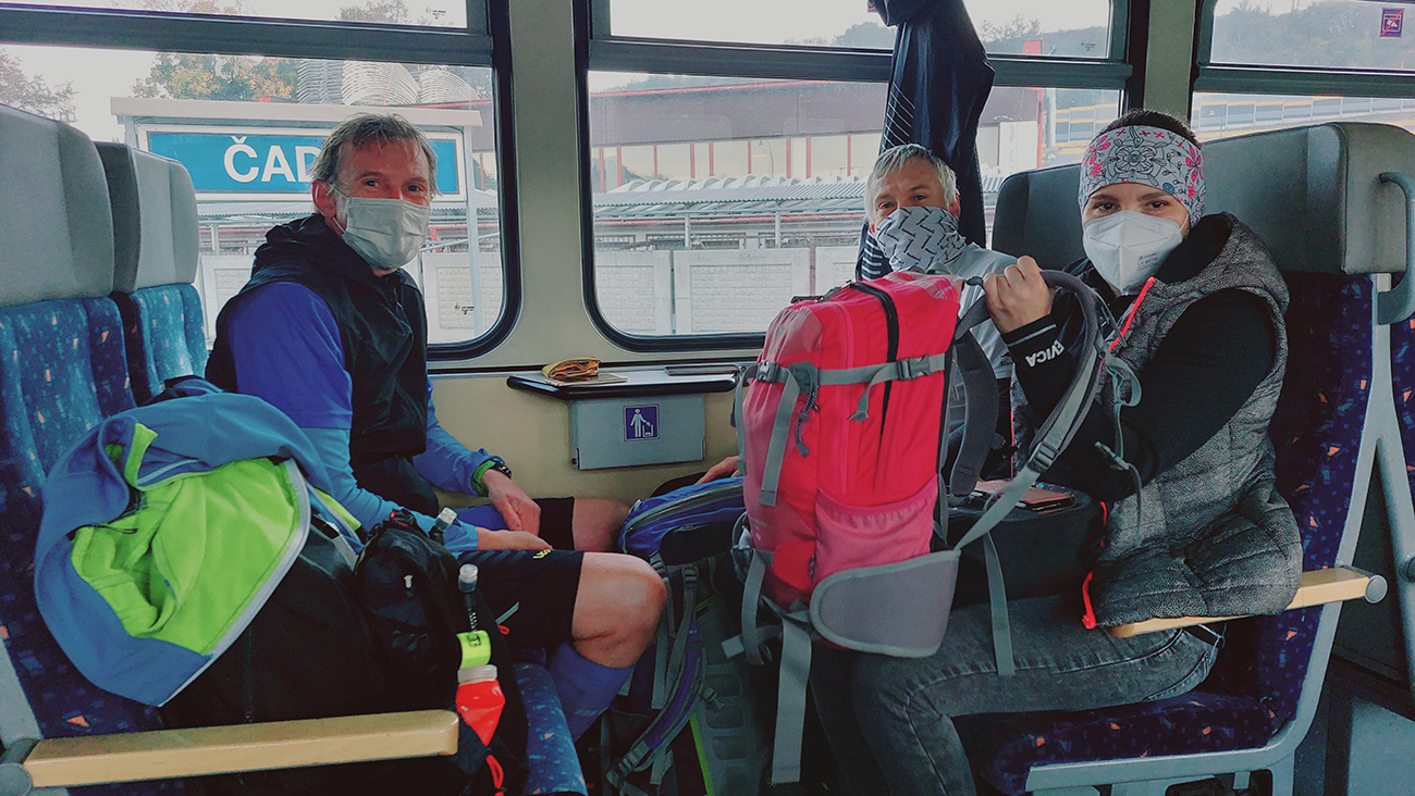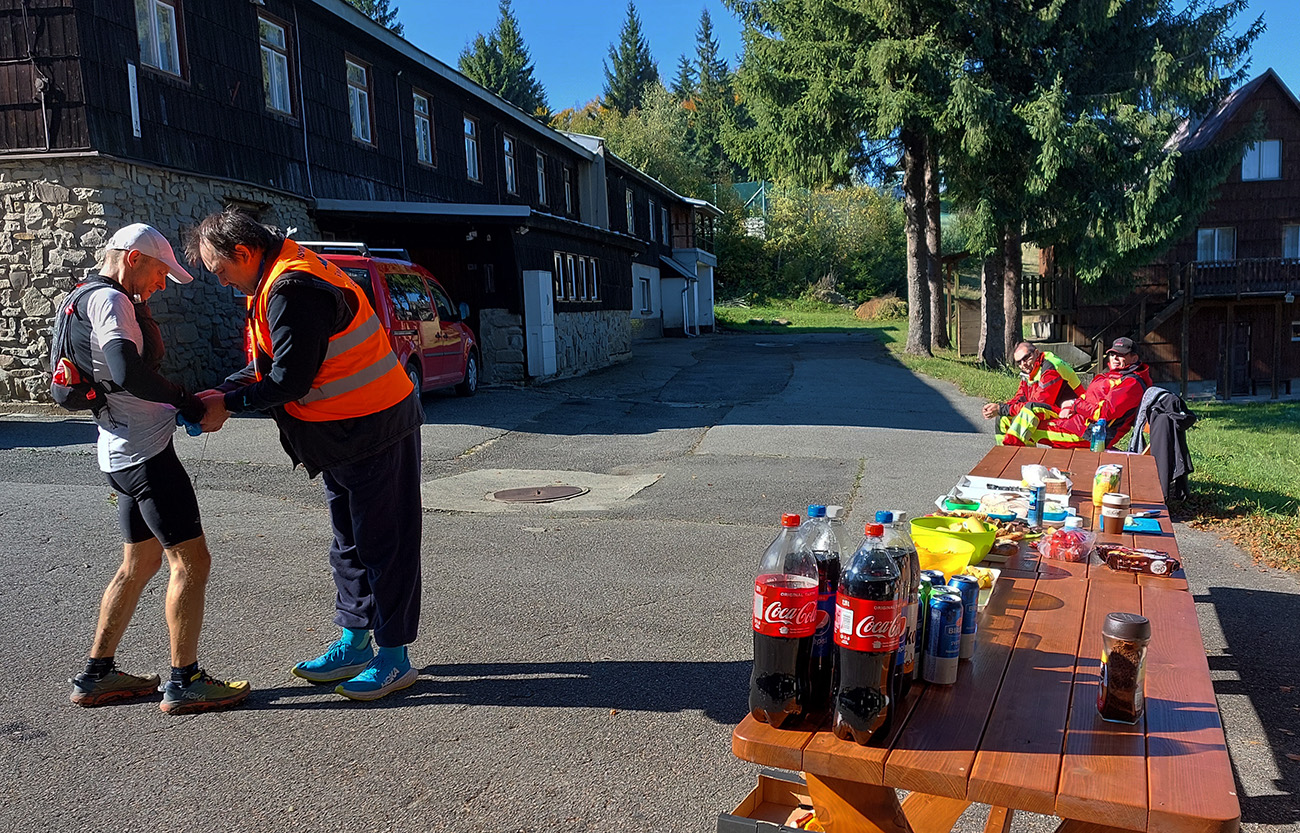 Toto nové a dúfajme, že aj ojedinelé podujatie nám zariadil covid – lebo kto by nááááhodou nevedel, bola to na polovicu (tú druhú) skrátená tradičná J100. Výhoda bola jasná: viacerí skalní účastníci videli záver trasy po prvý raz za svetla. Lebo štartovalo sa až vo Vysokej nad Kysucou, potom sa po žltej značke liezlo (no, aj letelo, ako kto) na hrebeň Javorníkov k Solíkovcom. Tam sme sa napojili na klasickú trasu a po nej až do Lysej pod Makytou. Vydalo to na 57 km, 2450 v.m. a štyri krmelce. Ozaj treba poďakovať organizátorom zo SUT, ktorí napriek zhoršujúcej sa a najmä neistej situácii počas tretej vlny pandémie boli ochotní toto celé v predstihu vymyslieť, pomeniť, zariadiť, označiť a celkovo na vysokej úrovni spáchať. Pre 104 zaočkovaných. Počasie sa im (aj nám) odmenilo: čistá obloha, ostré slnko, len okolo obeda trochu vetra (aj to do chrbta), k tomu plnofarebná, pestrá, októbrová krajina javorníckych cholvarkov. Ráno na štarte síce tráva primrznutá prvým srieňom, no na slniečku sa dalo vydržať aj v kraťasoch. Len niektoré scény pripomínali prírodopisné filmy zo savany – keď sa surikaty ráno vyhrievajú, otočené k slnku :-)