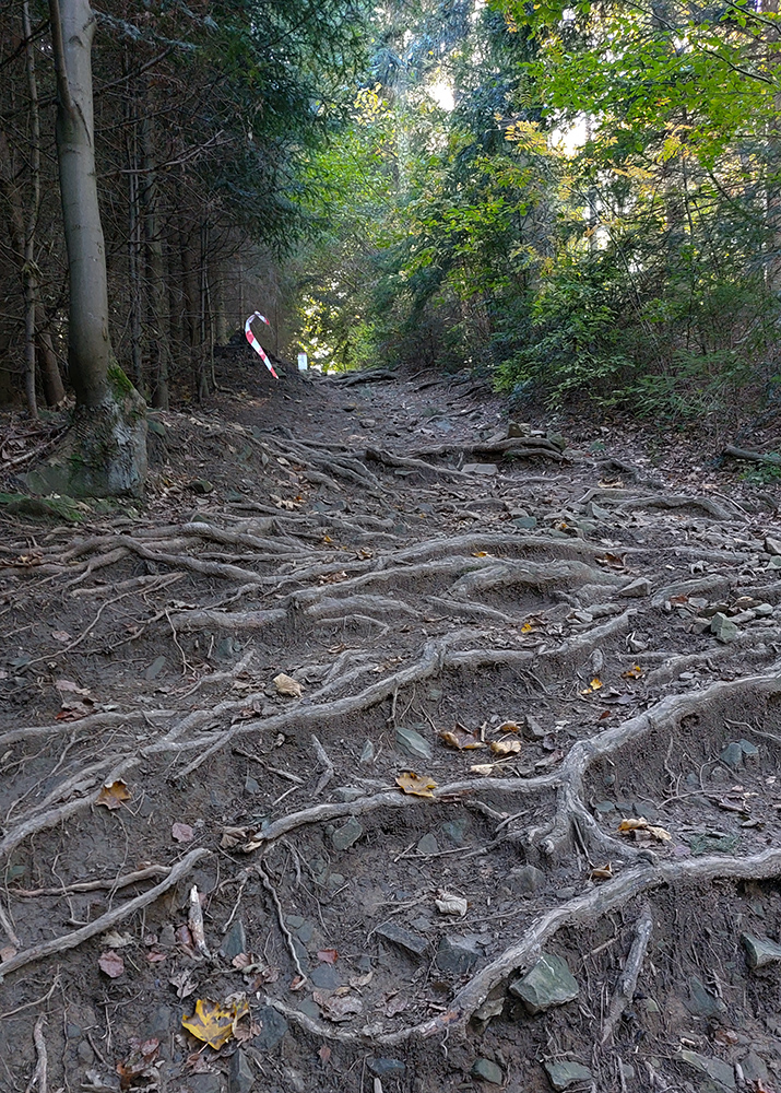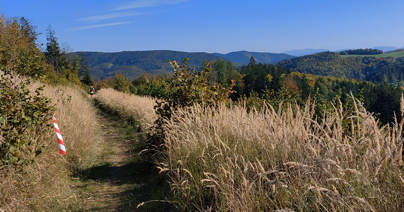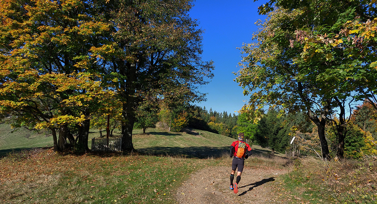 Okrem predošlých skúseností som mal aj ďalšie: strašný „stroboskopický efekt“ v tom strakatom lese pri striedaní svetla a tieňa - pri pomalšom pohybe mi to nezvykne robiť až také problémy. Zato jednotlivé úseky trate mi ubiehali strašne rýchlo – hlava ich má totiž podvedome zafixované v pomalšom, stovkárskom tempe. S takýmito myšlienkami som sa tam motal, navyše s poriadne odkrveným mozgom, a preto som bol zvlášť vďačný orgom za hustosiate fáborky a šípky. Lebo aj keď trať už dobre poznám, normálne som si miestami aj nadával, že som nezapol aj navigáciu.