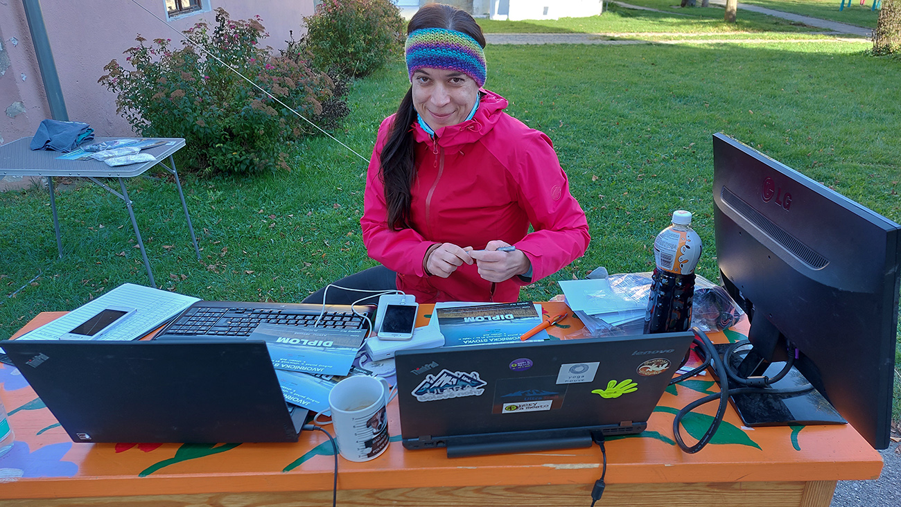 Všetky výsledky sú samozrejme dole medzi fotkami a na Ultra Hikingu TU . V cieli pred školou pohodička, napríklad aj fajné, sladké moravské koláče, prekladané klobásou... Pre normálnych samozrejme cestoviny (so všetkým čo brucho znesie) a kadečo iné, radlerov aj silnejšej dezinfekcie (slivkovej, marhuľovej...) čo hrdlo ráči, kofolky a šťavičky, ale všetko pekne v exteriéri. Tak bola sranda sledovať, ako sa posedávajúci finišeri presúvajú po trávniku, utekajúc pred rastúcim tieňom. Zdrhol som preč už po štvrtej (Braňo vďaka za odvoz do PU ku vlaku!) - tak dúfam, že všetko dobre dopadlo, orgovia a počítače po západe slnka nezamrzli, úmrtnosť na trati nebola vysoká a všetci preživší došli dlho pred limitom (pred 21:00). Ešte raz vďaka SUT za podarenú akciu a ochotu risknúť to celé. A o rok dúfajme, že už v tradičnom formáte.