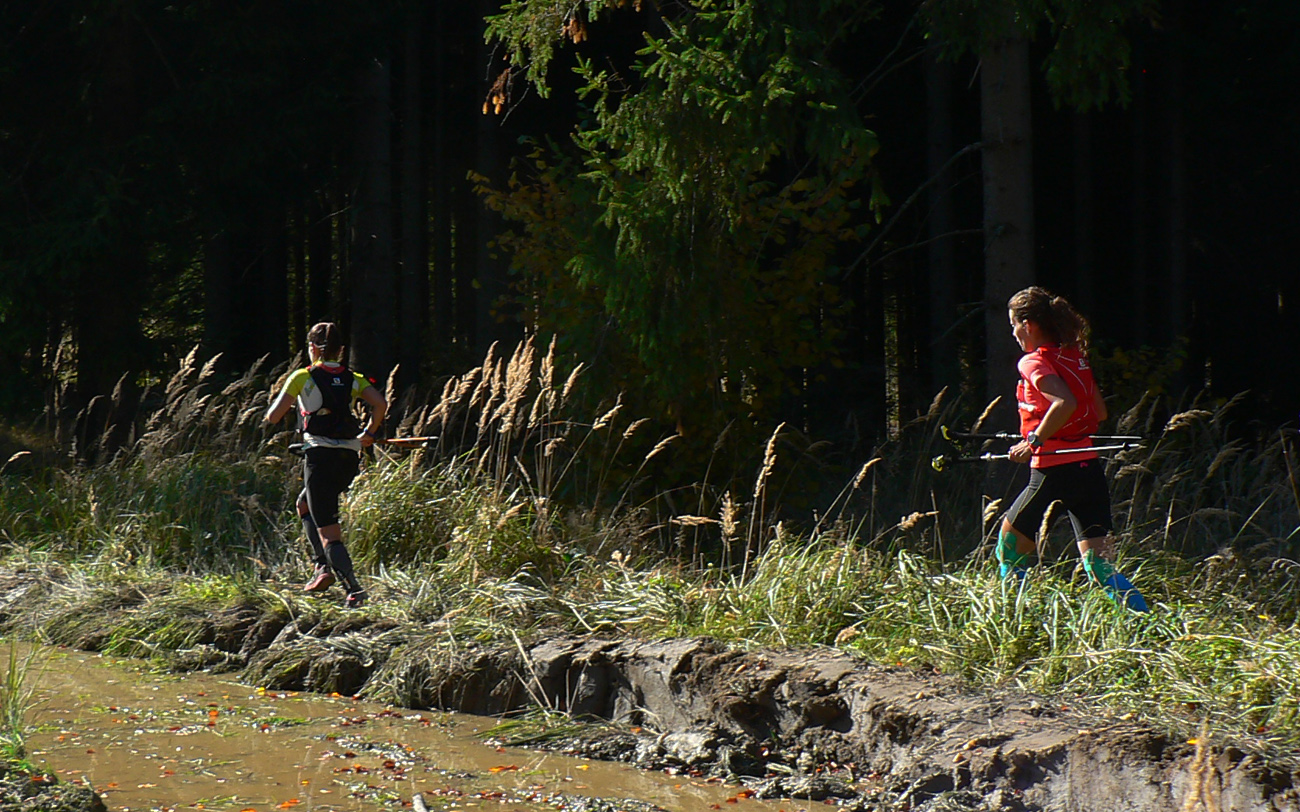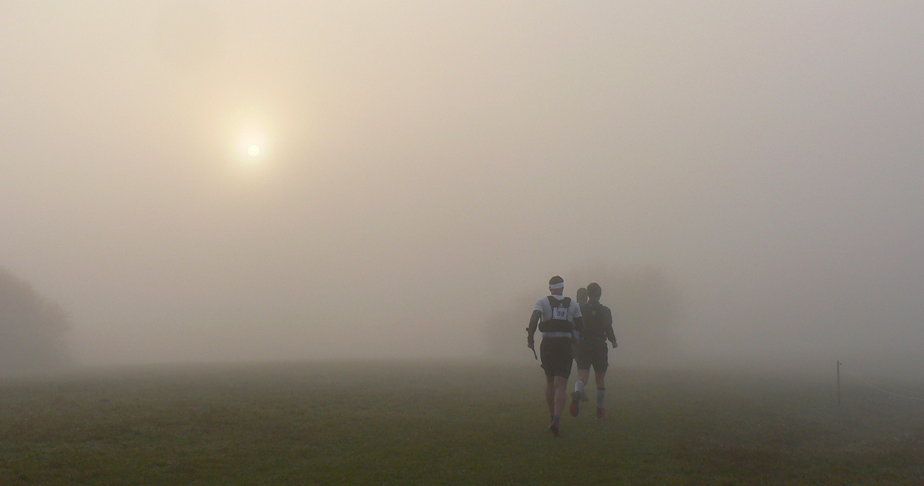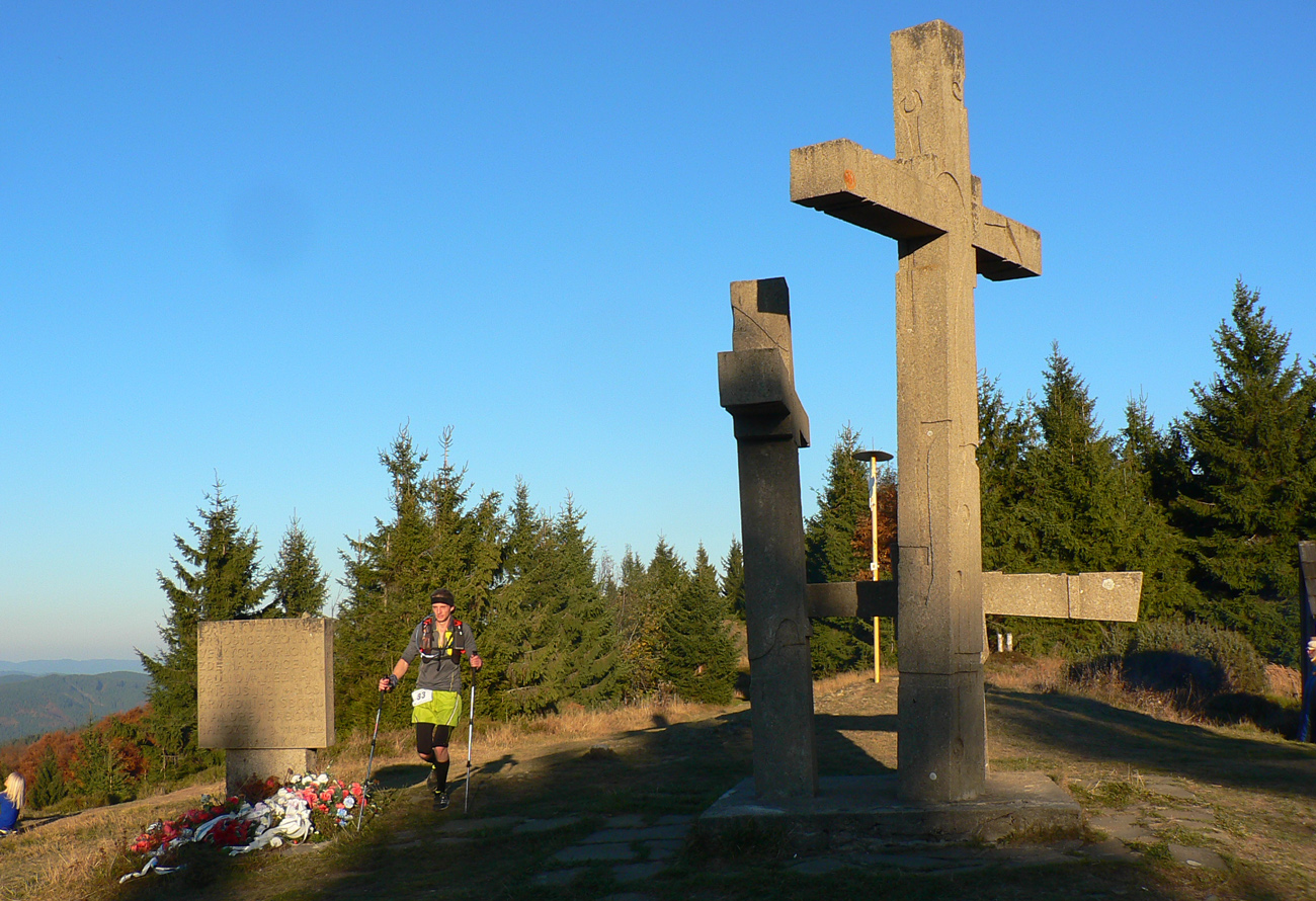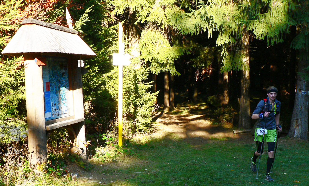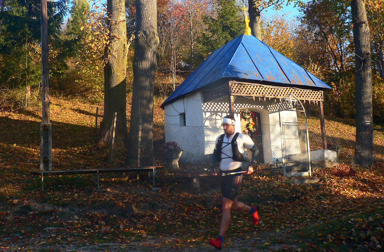 Rastúci šuchot som ráno sledoval už od piatej, pred siedmou sa to všetko začalo trúsiť do hnusnej vlhkej hmly smerom k námestiu. Tam už Náčelník udeľoval cez megafón dobré rady typu „po výbehu z mesta držte sa fáboriek a elektrického ohradníka.“ O pol ôsmej sme boli vystrelení hore sídliskom, domáci akoby si už zvykli – pekne uhýbali a niektorí aj zafandili. Čelo vykecávalo v pohodovom tempe, tak som chvíľu stíhal, ale fotky aj tak nič moc, až nad hmlou. Končila nevysoko, hore raj. Začalo nádherné behanie cez osady, rôznofarebné lesné tunely, lúky s výhľadmi a sem – tam aj s ovečkami, no jednoducho gýč... Jasné, že aj megakaluže bolo treba poobchádzať a pomedzi hnusné rúbaniská sa premotať, ale to len zriedkavo.
