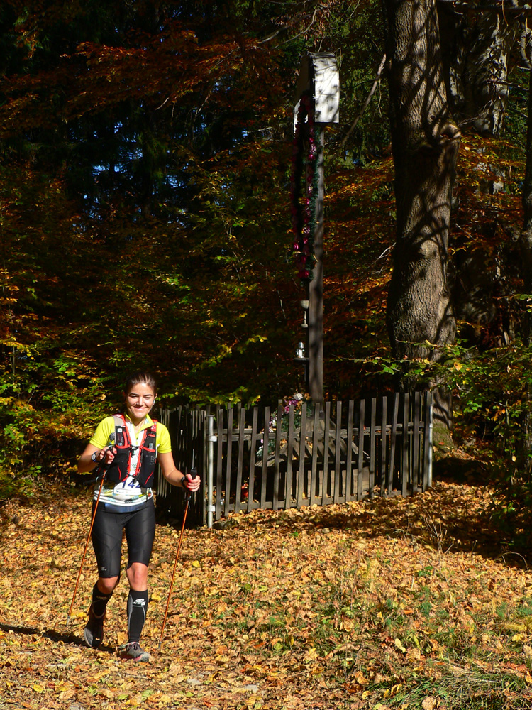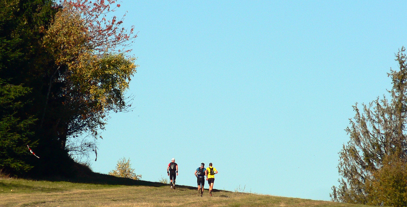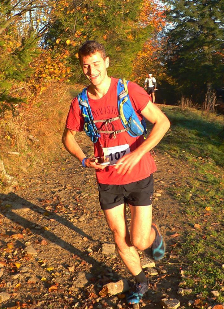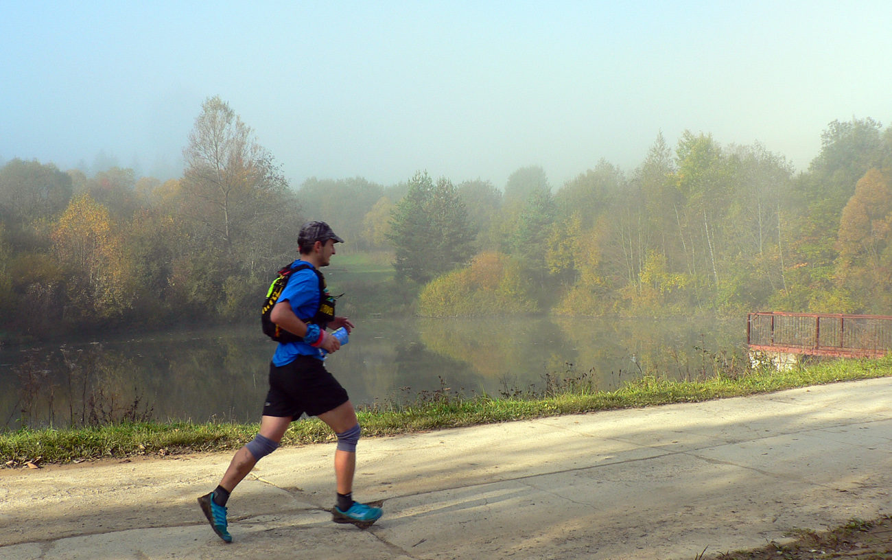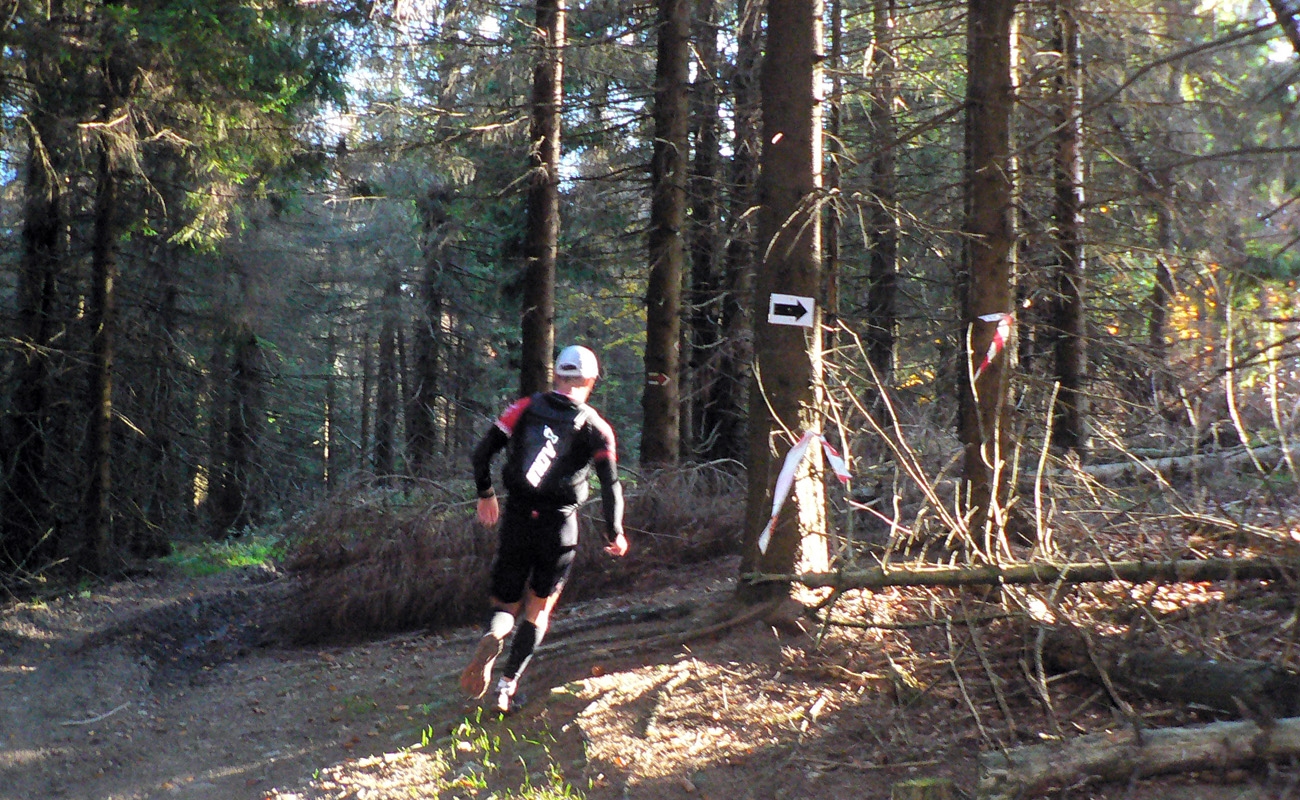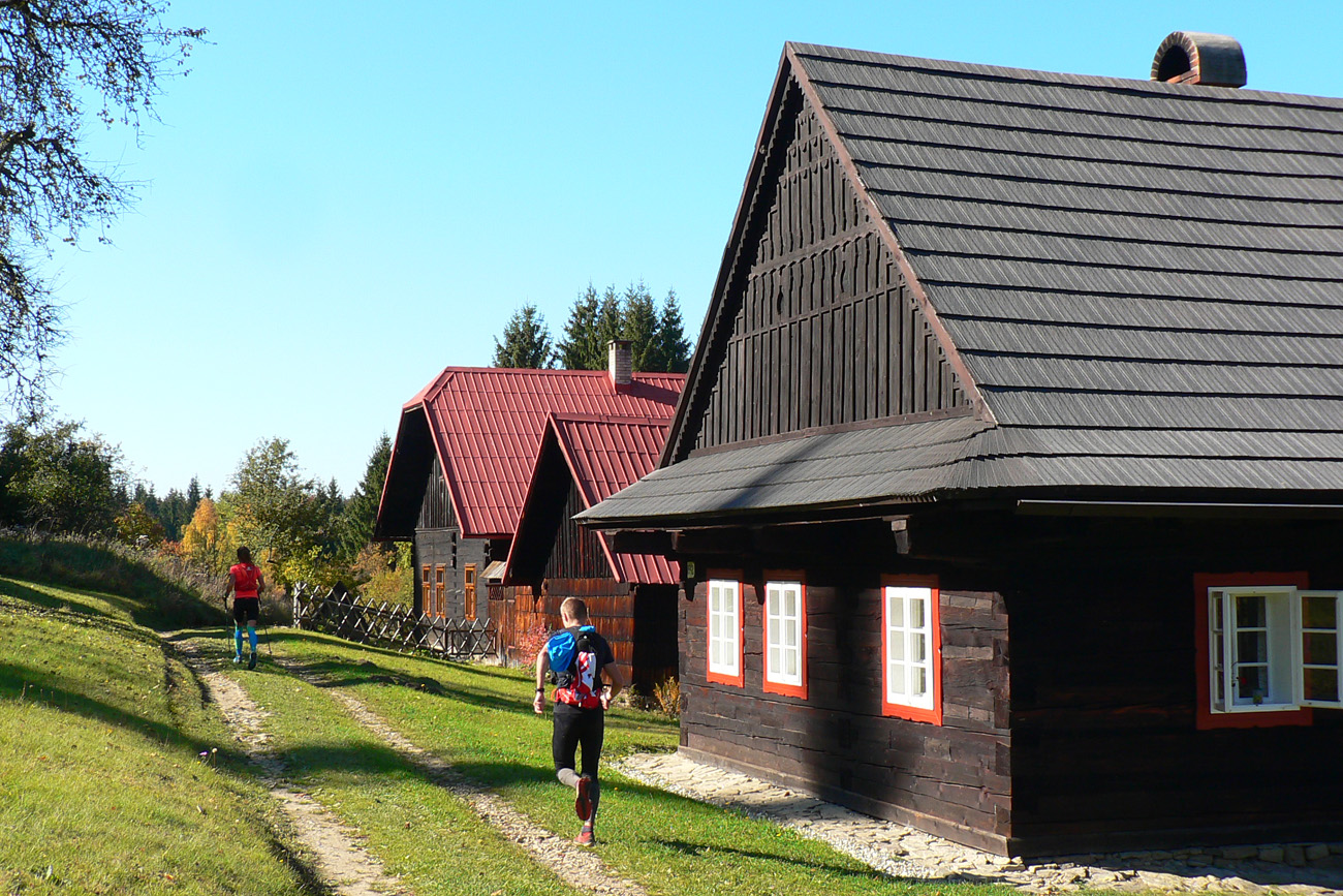 Rastúci šuchot som ráno sledoval už od piatej, pred siedmou sa to všetko začalo trúsiť do hnusnej vlhkej hmly smerom k námestiu. Tam už Náčelník udeľoval cez megafón dobré rady typu „po výbehu z mesta držte sa fáboriek a elektrického ohradníka.“ O pol ôsmej sme boli vystrelení hore sídliskom, domáci akoby si už zvykli – pekne uhýbali a niektorí aj zafandili. Čelo vykecávalo v pohodovom tempe, tak som chvíľu stíhal, ale fotky aj tak nič moc, až nad hmlou. Končila nevysoko, hore raj. Začalo nádherné behanie cez osady, rôznofarebné lesné tunely, lúky s výhľadmi a sem – tam aj s ovečkami, no jednoducho gýč... Jasné, že aj megakaluže bolo treba poobchádzať a pomedzi hnusné rúbaniská sa premotať, ale to len zriedkavo.