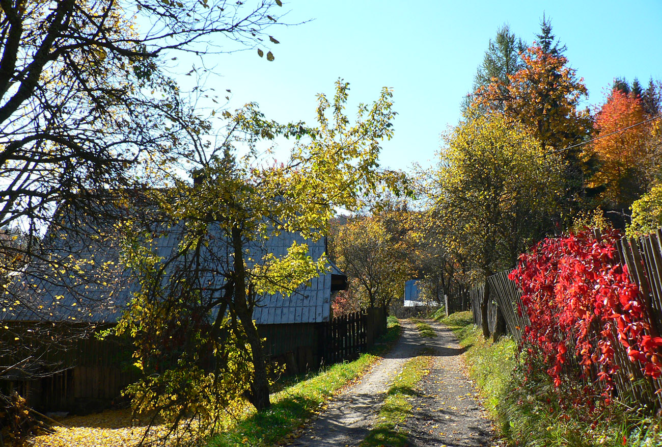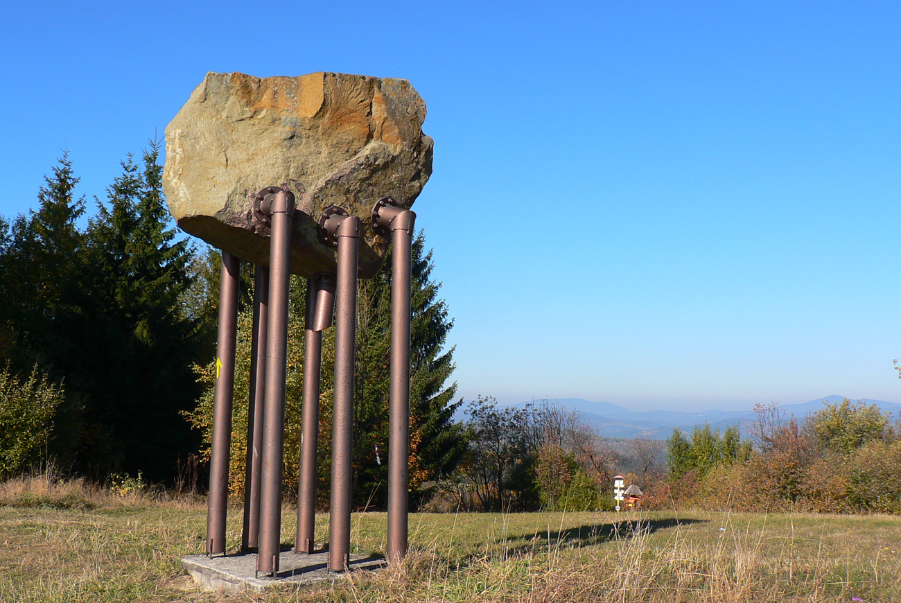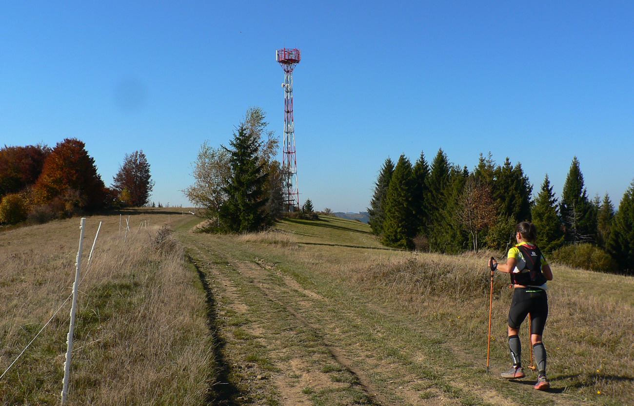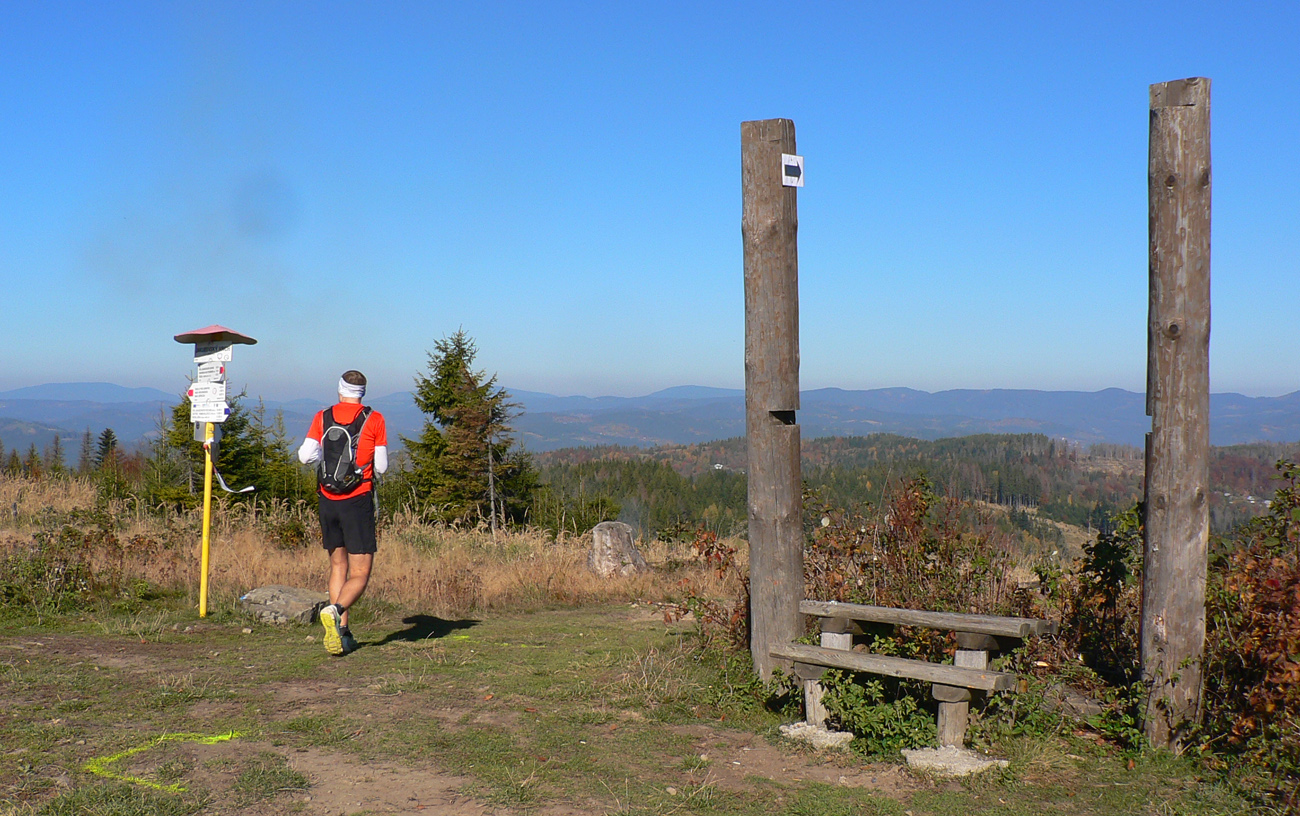 Z dediny zas sme sa rýchlo dostali nad hmlu po panelke okolo toho rybníka, či čo to tam majú. Všade vrčia píly a traktory, domáci chystajú drevo na zimu ako diví. Hej, tu treba, tu kúria už hádam mesiac. Po dlhom výbehu na hrebeň, do Vrchrieky k „Potvorovi“, nasleduje konečne dlhší, súvislý a veľmi pekný úsek až na Jakubovský vrch. Za Kameňovníkom (ďalším výtvorom sochárskej galérie) ešte päť minút strmo hore a potom ešte strmšie dole. A s pár stúpaniami na spestrenie, dlhá klesavá cesta do Dlhej, na K3. Tam už aj na dne doliny svietilo a hrialo. Aysen a Ivana tam doleteli ako víchrice a odtiaľ až po Semeteš som bol svedkom ich poriadneho naháňania. Okrem toho malá hydrologická vsuvka: sú tam cestou dve miesta, kde je furt blato – pri kaplnke nad Poľanami (to je megablato) a popri chalupách u Bachroňovcov. Teraz? Sucho, najviac ak nejaká minimláčka, nechápem...