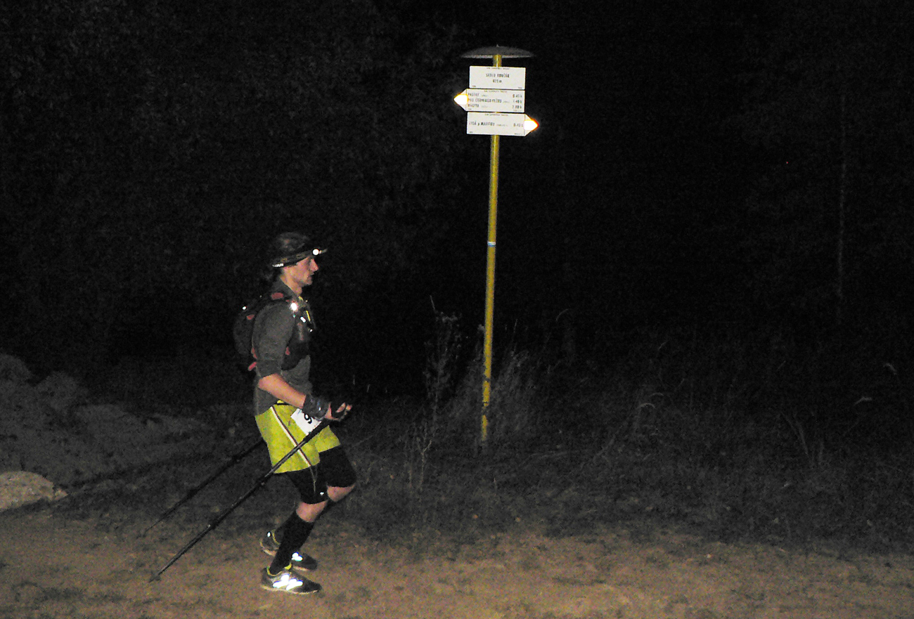 Tak, cieľová „rovinka,“ posledných asi 10 km. A sranda, že akosi viac do kopca ako z kopca. Také monotónne dupanie po nočných zvážniciach. Kufrovacia lúka z minulého roka je našťastie už označená parádne (si myslím). Ale neskôr, keď už sedím v cieli, cez okno vidno ako niektorí prichádzajú z opačného smeru ako by mali. A jeden nešťastník sa dokonca ocitol druhý raz na K7 :-) Asi mu vtedy nebolo veľmi do smiechu... Tak, nik hádam na tých šutroch veľmi zle nedopadol, čiže všetko hádam dobre dopadlo. Orgsteri z SUT sa tiež hádam nebudú dlho spamätávať z prebdených nocí. Zas to spravili na viac ako jednotku, lebo vybavili aj počasie a suchý podklad. Už čo môže byť o rok lepšie? Žeby konečne potreba mať tie lyžiarske okuliare? Každopádne vďaka za najkrajšiu stovku sezóny.