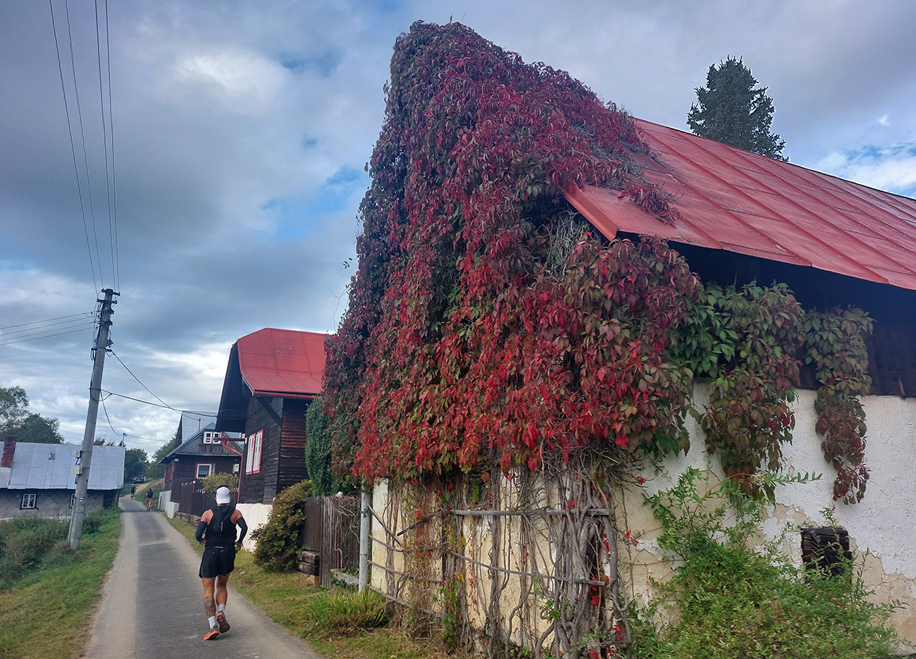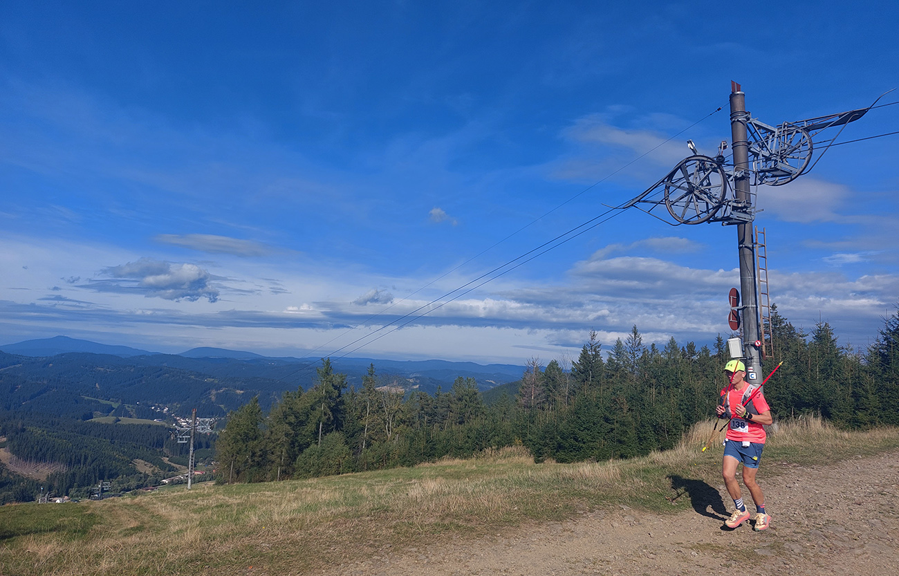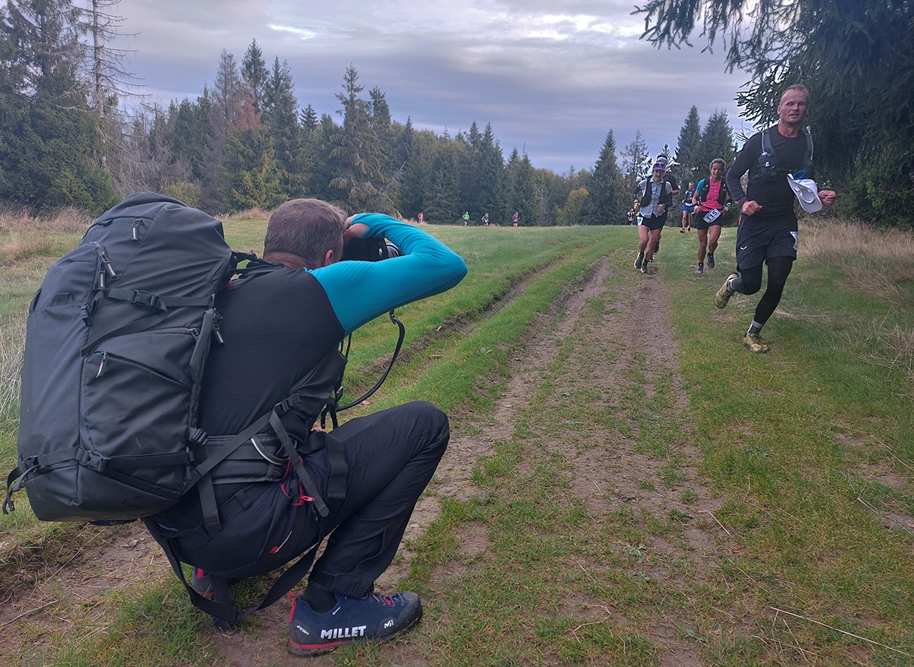 Úvodné kilometre sú tu v znamení dlhých výbehov aj zbehov, na jednu aj druhú stranu hrebeňa Javorníkov. Tak si hádam každý vychutnal v bočných dolinách a na svahoch tie rúbaniská a nové výhľady – a pod nohami v tých najstrmších sklonoch šutroviská. Ale jasné, že viac bolo pekných miest – pobehov po hrebeňoch a prebehov cez osady. Každý ešte plný síl, tempo závratné aj ďaleko za čelom. Len dve provokatérky si medzi tými prepaľovačmi vykluskávali, nabúravajúc ego spolubežiacim chlapom vykecávaním o tom, ako sa bežalo pred týždňom na maratóne v Košiciach za 2:51 :-) A že teda maratónsky osobáčik je najlepšie vyklusať stovkou... No hoďte na ne sieť!