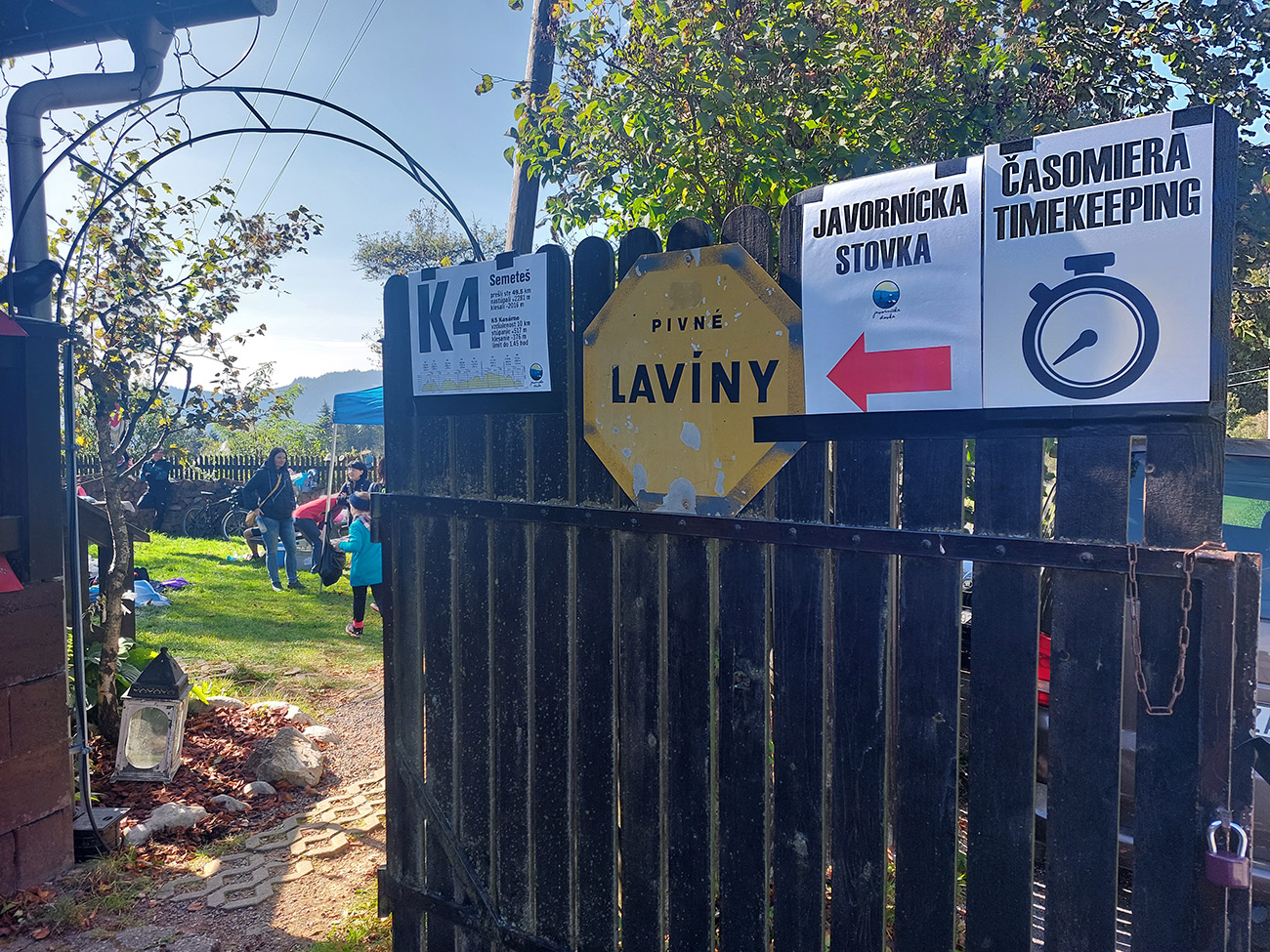 No ale pome priamo do akcie. Ráno správne hornokysucky chladné, pod 10 stupňov, a ako myši sa pred zimou tlačia do chalupy, aj tu sa dav natlačil do kulturáku. Tam ešte fičala prezentácia a odovzdávala sa batožina aj dropbagy, tak výhovorky sa našli. Až asi 10 minút pred siedmou musel El Prezidente Belo poriadne zahvízdať a vyhnať to všetko von. Lebo z pódia sa chcela okrem hlavného páchateľa SUT Rada Haracha prihovoriť tuším aj miestna podrichtárka. Len ju asi moc ľudí nepočúvalo, ktovie či je aj na také zvyknutá :-) Hlavnou páchateľkou J100 je ale Ľubka Fenclová, na to netreba zabúdať pri vďakyvzdávaní -aj keď ona sa vždy tvári popri Náčelníkovi tak nenápadne, že? Všetko sa inak odohrávalo aj pod prísnym dozorom pána Petra Jilemnického (inak v cieli pre zmenu na mravnosť dozeral P. O. Hviezdoslav):