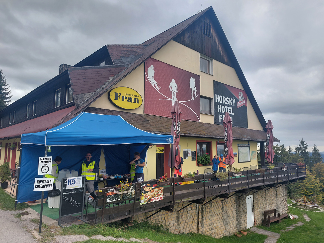 Za K2 (Ochodnica) sa trasa potom už častejšie zdržiava hore na „hrebeni“, aj keď samozrejme zákerní orgovia sa vždy snažia občerstvovačky strčiť do najhlbších dolín, ale sa v okolí nájdu. A keď to už fakt nejde (ako na K5 v hoteli Fran na Kasárňach), tak čo je tam poruke najstrmšie? Predsa zjazdovka so sklonom ako tatranský žľab! Tú keď niektorí videli, vraj ich začali obchádzať mdloby a radšej si šľahli tú infúzku :-)