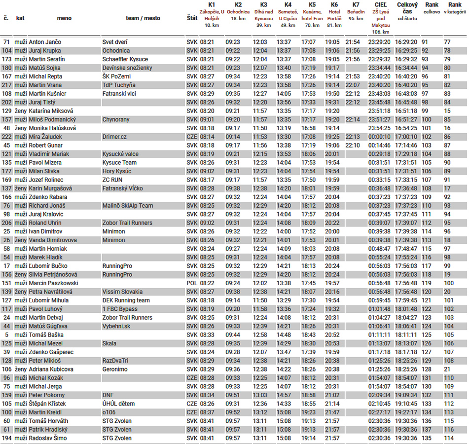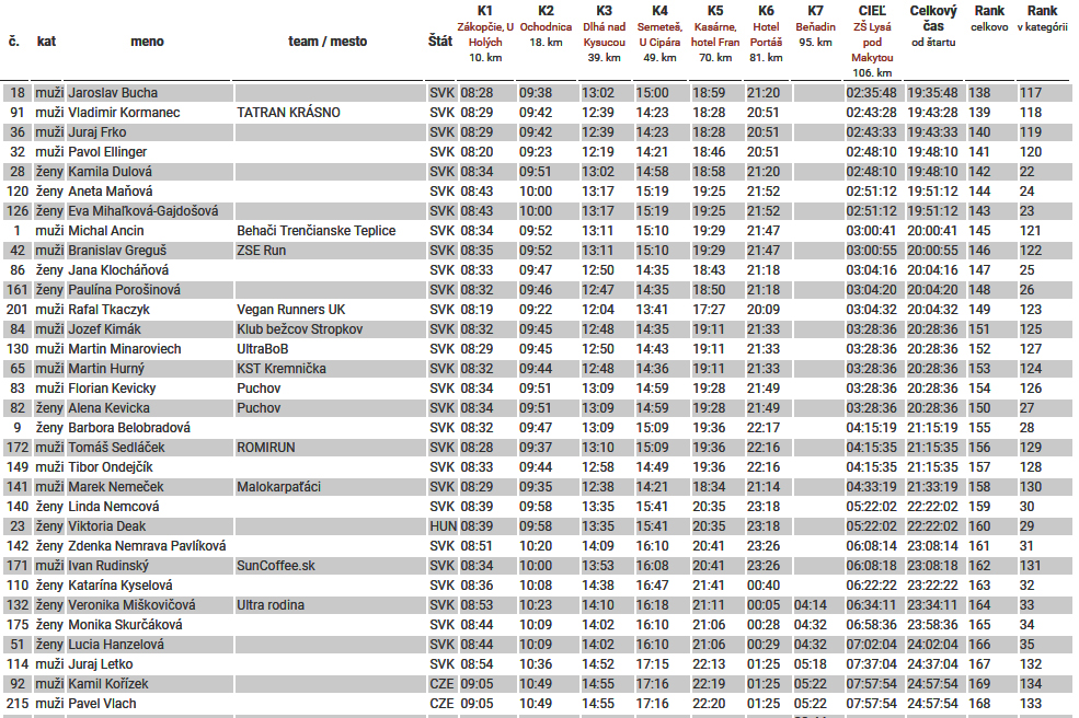 Tma na posledných úsekoch je pre niekoho asi aj milosrdná – napríklad že nevidí, ako brutálne sa dvíha pod nohami terén pred Makytou. Ale ani dlhánsky zbeh z nej na poslednú kontrolu v Beňadíne nie je pre rozsekané nohy žiadna lahôdka. Potom posledných asi deväť kilákov je už plynulých, hore aj dole. Ale pre veľa ľudí asi aj nekonečných, že?