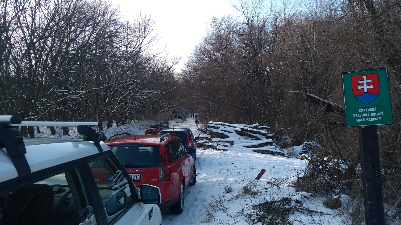 Nedeľa 11.2. poobede malá lyžiarska vychádzka za bytovkou v Dúbravke, smer Devínska Kobyla. Nástup je na pešo 1km po sídlisku, zopár ľudí sa potklo, keď sa obzerali kam idem s lyžami.... Ale tak svietilo slnko a sneh bol, tak škoda doma sedieť. Dá sa samozrejme celkom dobre pricestovať aj elinou či busom, odkialkoľvek.