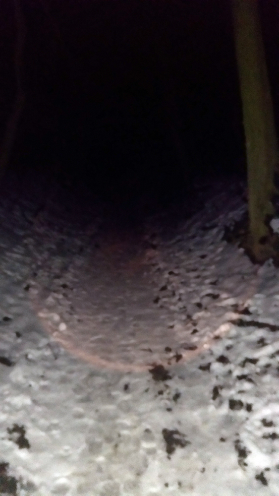 Na vysielači hore stretávam bežkárov, pár. Ale majú iba jednu čelovku, a v tom mlieku..... No. Zdravíme sa, prihováram sa, ponúknem rezervnú Petzlovku klasiku. Dole pri rampe sa pri aute stretneme, tam vrátia. Ja ich aj tak dobehnem, oni to šúsovať nebudú. Zhodím pásy, oblečiem bundu, cvaknem do viazka a pomaličky dole. Sem tam niečo odfotím, ale asi to bude len tma. Po ceste ich dobieham, žene to ide pomalšie, tak trošku jej prisvecujem halogénom, pánko vpredu razí stopu. No takto asi ostane bez večere alebo...... Nečakať sa po ceste.... V takej tme... Ale už sme skoro dole. Závoru zbadám na poslednú chvíľu, dobre sa slalomovalo. Párik sa skladá do auta a ja pokračujem ako včera. Pomaly plúžikom v rizni s bočným náklonom ako pickup plaším stádo diviakov s malými, len čierne gule sa mihajú po lese, je to tu od nich pekne rozryté.