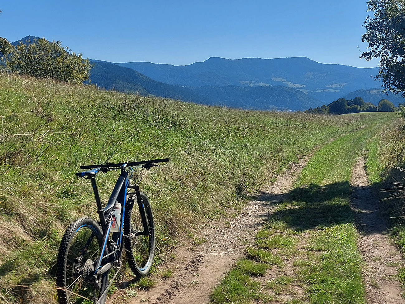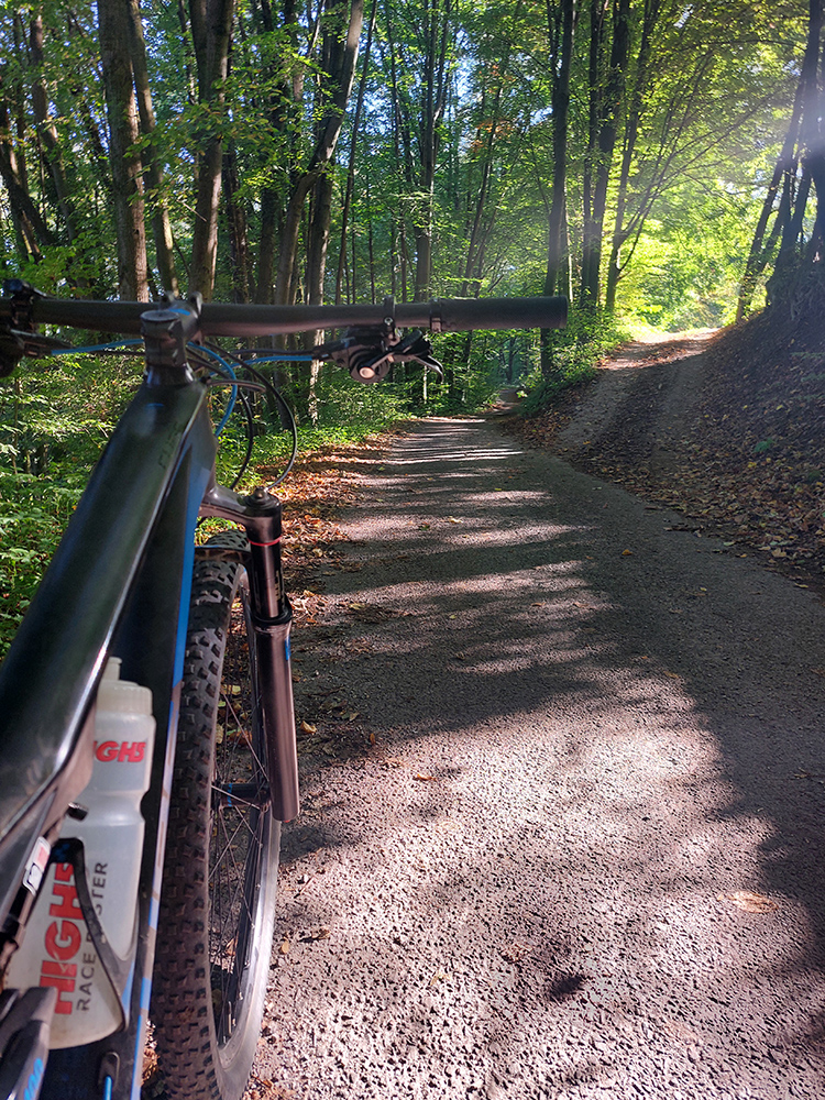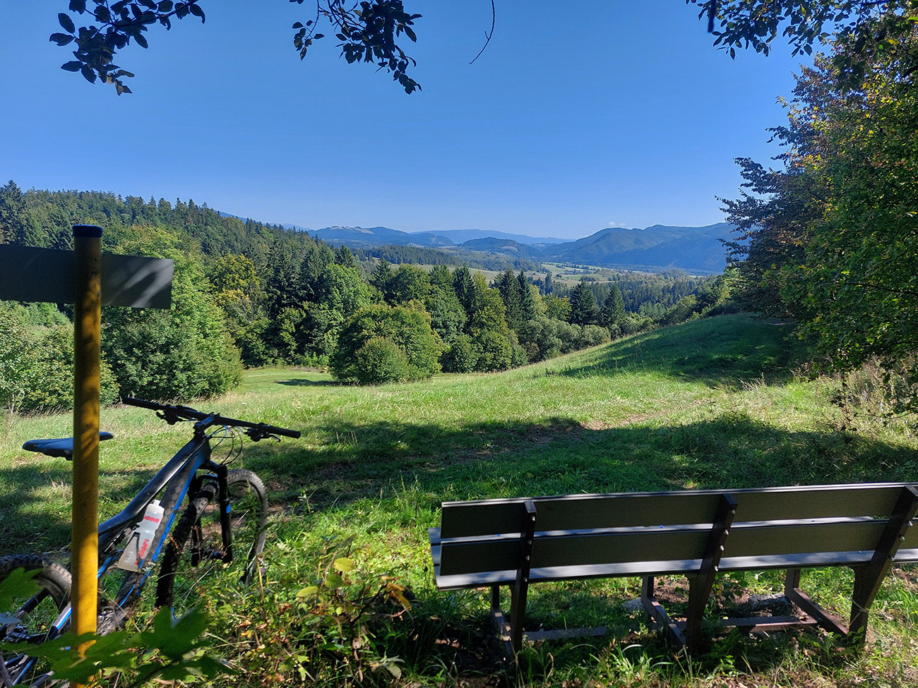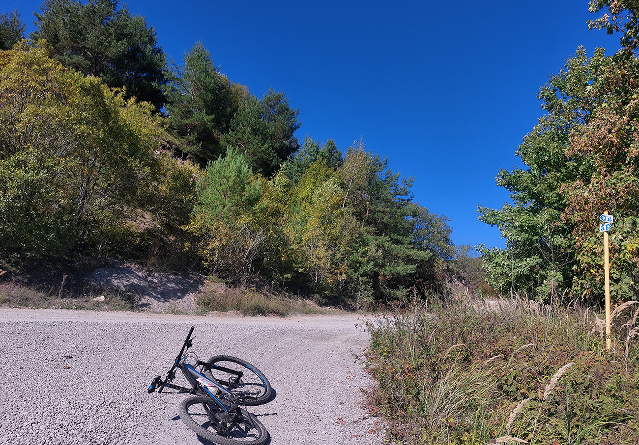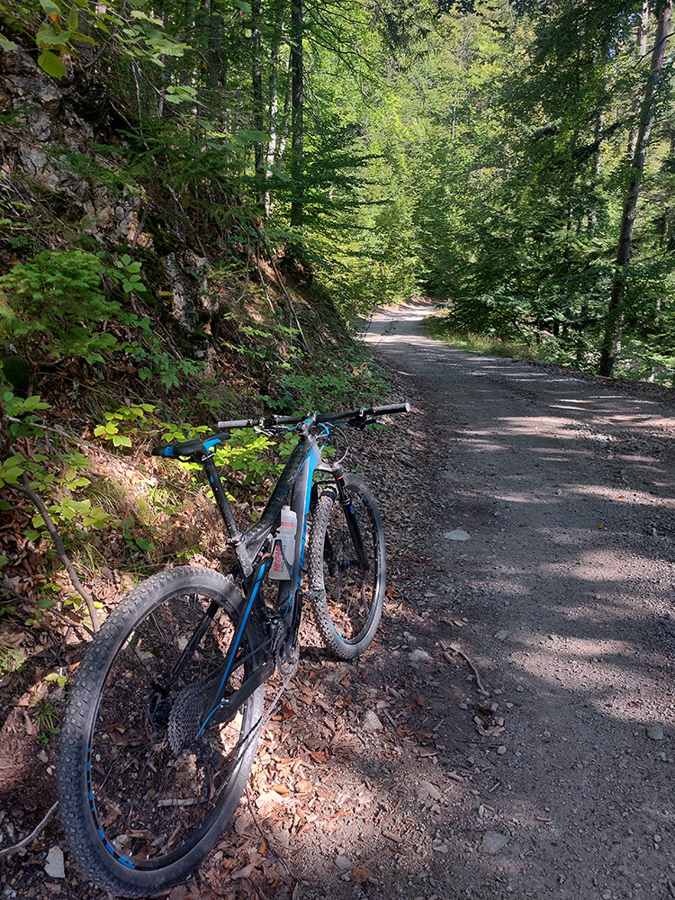 Úvod teda vynechám, začnem úsekom po zelenej turistickej z Ľupče do Ľubietovej. Prvé dlhšie stúpanie po šotoline a hline, po príjemnej lesnej ceste, potom hojdanie cez lúky s výhľadmi – doprava a dozadu k Bystrici, doľava k Nízkym Tatrám, dopredu na Vepor. V závere hladký, strmý, rýchly, lebo asfaltový zjazd do bývalého banského mesta. Príjemné.