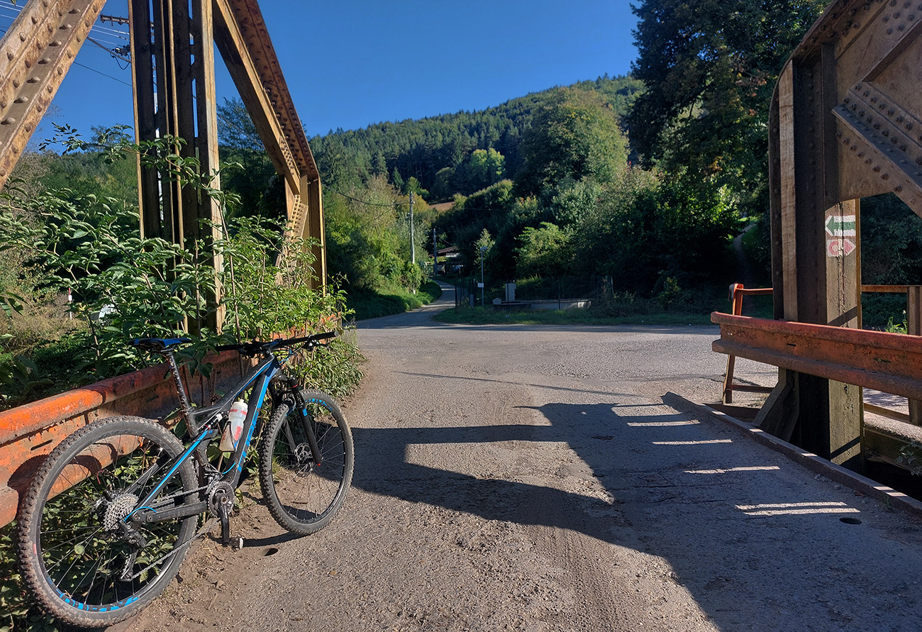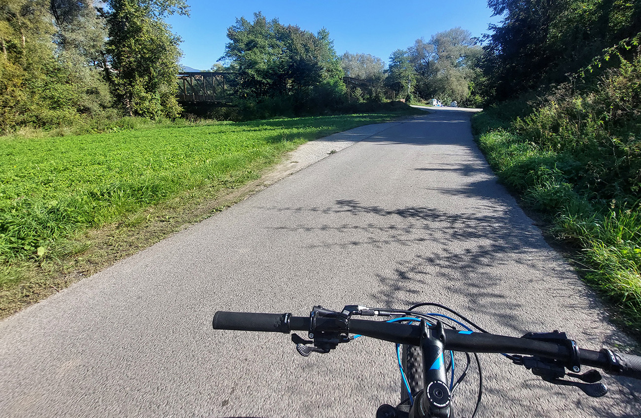 Prejazd na pravý breh Hrona v Dubovej som si mohol nechať na peší most, ušetril by som si tlačenie po úzkom a strmom chodníku od elektrárne k domom. Ale hlavne som sa „otočil“ na cestu nazad do BB presne na tom mieste, kde som začiatkom leta musel ukončiť spomínanú jazdu dole Horehroním, teda jej terénnu časť. Symbolicky na stopke, pod estakádou hlavnej cesty: