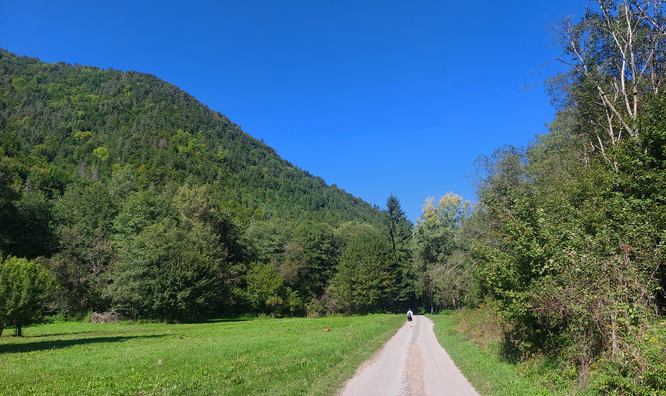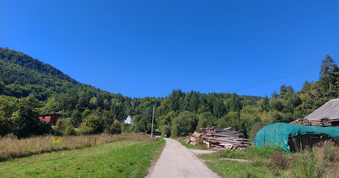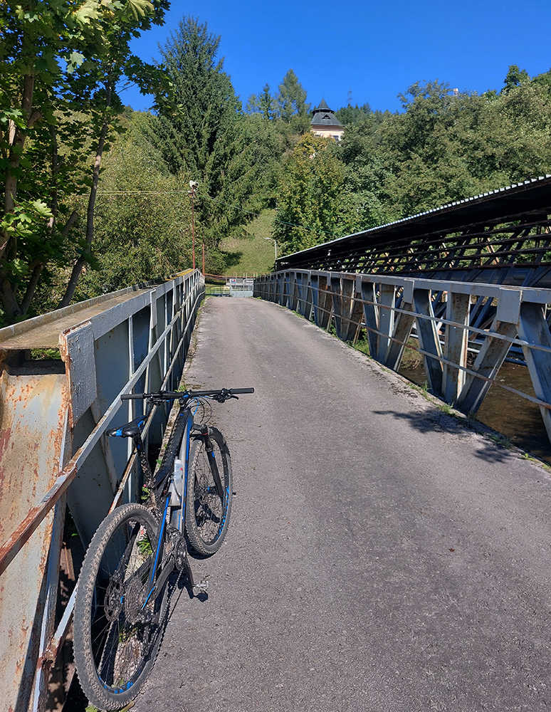 Aspoň posledný úsek je za odmenu a pre unavené nohy milosrdnejší – v doline len prejazd cez obnovený most cez potok a zas do lesa, do príjemného traverzu, vedúceho už do Slovenskej Ľupče. Ako inak, aj tu je zjazd medzi domy kratší a strmý.