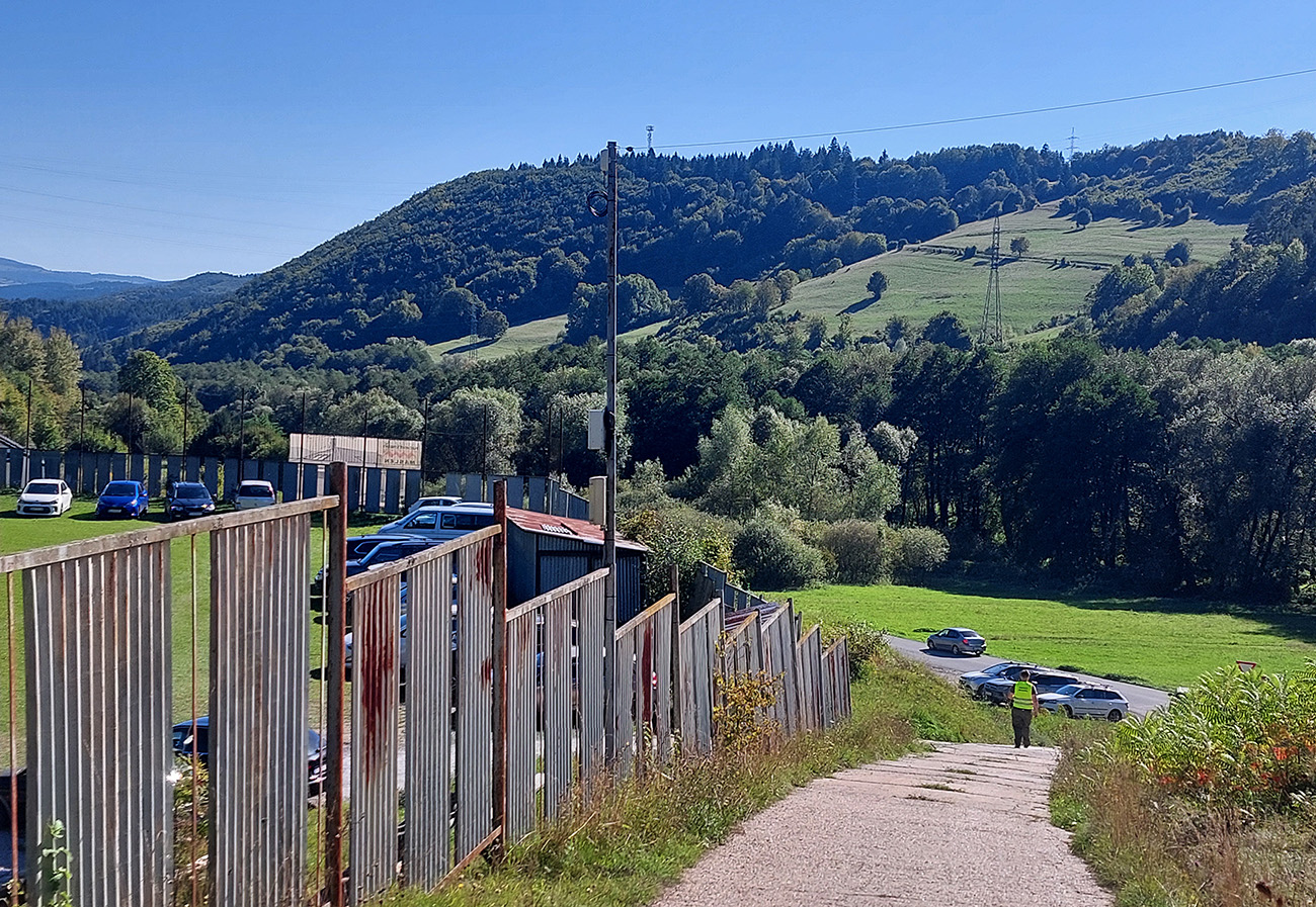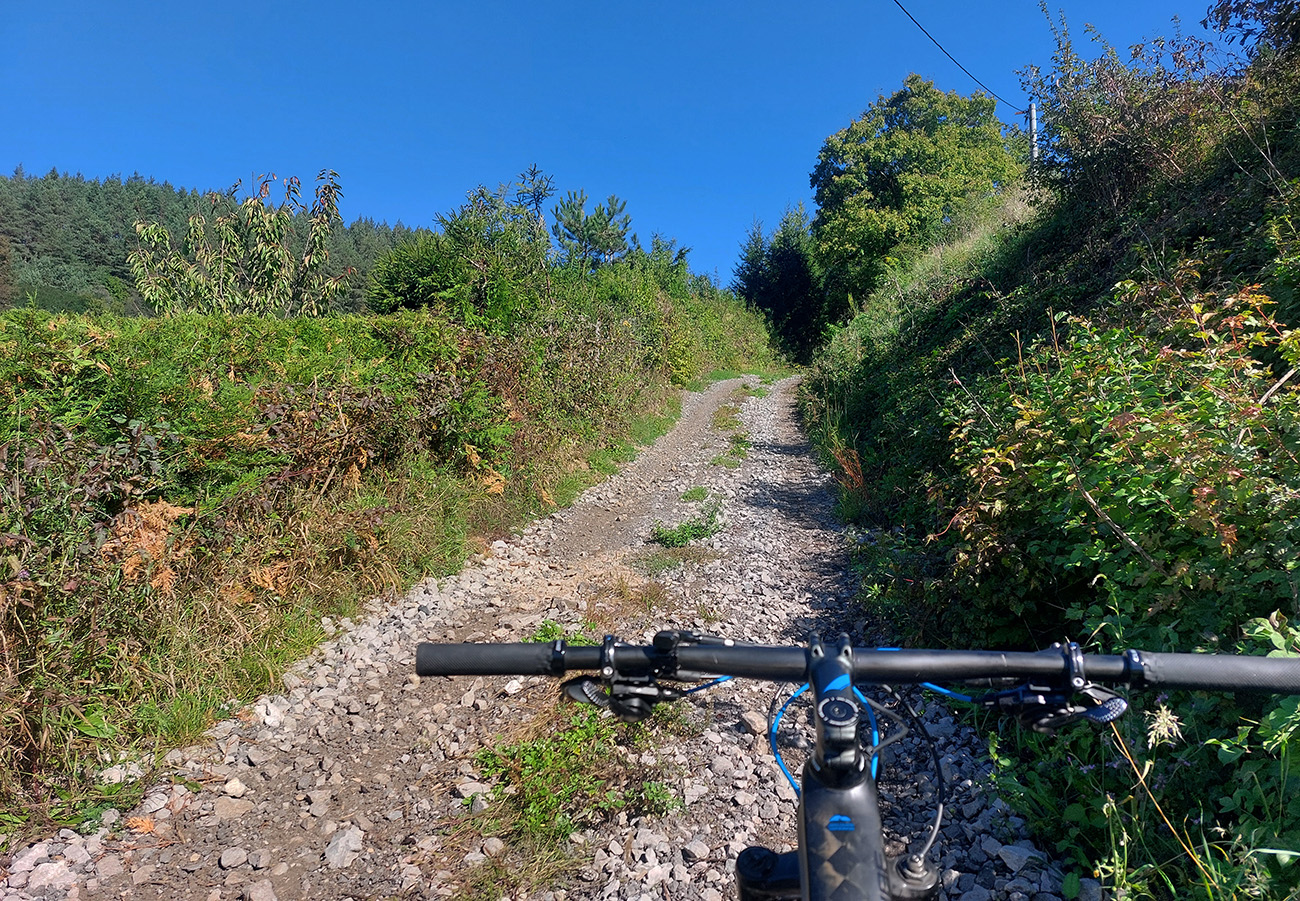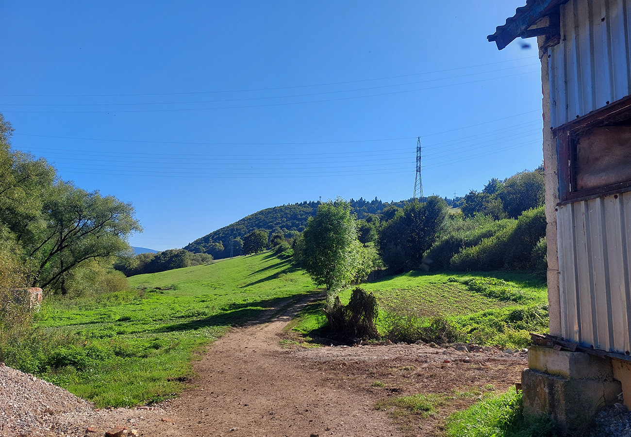 Obchvat Medzibrodu je tiež jasný, aj keď nie po značenej cykloceste – najprv trocha strmej šotoliny poza vysielač na Hrbe, potom príjemnejšie hojdanie v malých sklonoch po lúkach poza bioplynovú stanicu, s výhľadmi na juh. Záver pomedzi maštale a iné haly k cyklotrase (znovu 5558) vedúcej do Hiadeľa.