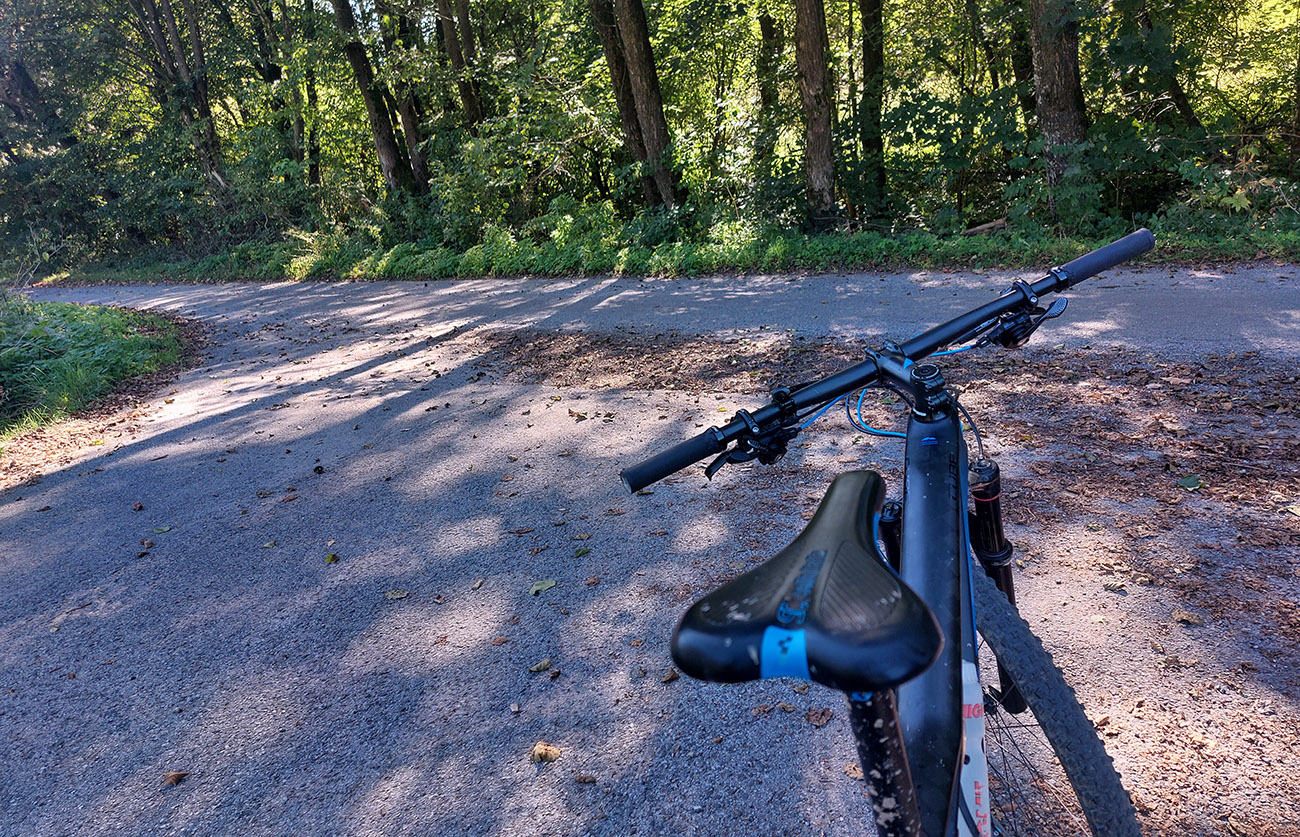 Záver je jednoduchý – rovinky po tráve pomedzi železnicu a „route 66“ až k priecestiu, úspech je dostať sa tam na druhú stranu cesty. Potom už len cez Hron, okruh sa uzavrie a do BB rovnako ako na začiatku, vybavené. Na záver len toľko, že tento výjazd jednoznačne odporúčam v tomto smere, opačne by to bolo v stúpaniach často nepohodlné a bolo by treba dosť tlačiť. Na profile je to aj vidieť.