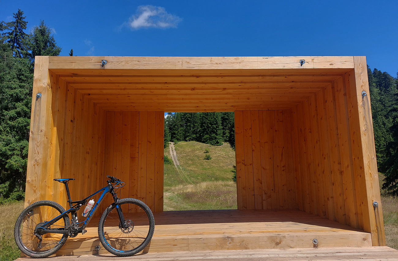V okolí ústia Demänovskej doliny kopec gýčových dreveníc, vypipľaných chát a atrakcií pre turistov, pod kolesami sa strieda asfalt, šotolina aj tráva, len zľava stále les a doprava výhľady k Mikulášu cez guľaté pahorky podhoria. Plošín, Pavčina Lehota. Lazisko som obišiel ponad domy, cez lúku parádne vyjazdená stopa od bicyklov. Zámer zájsť si aj k najväčšiemu drevenému kostolu u nás síce bol, ale už som tam bol, nechcelo sa mi už.
