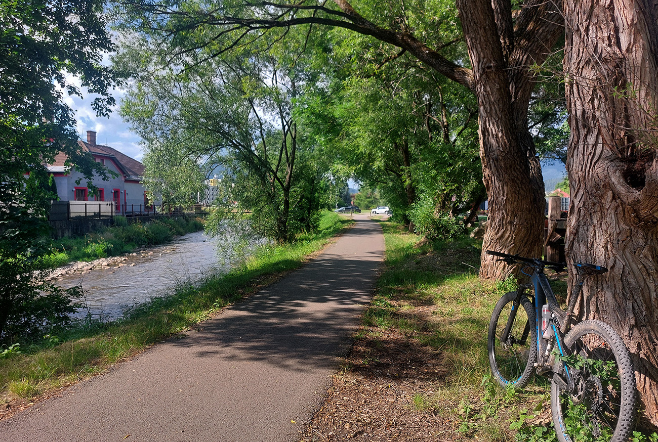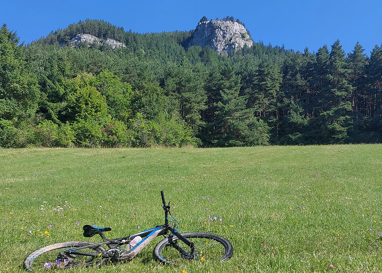 Popod Liptovský hrad (najvyššie položený na Slovensku, keby niečo) je to smerom na Liptovskú Annu jasné, ale strméééé! A po lúkach s číhajúcimi rojmi ovadov. Hore v Sedle pod Kráľovou som sa zamotal, ako som sa im snažil ujsť a zároveň nájsť začiatok zjazdu po červenej značke, v metrovej burine. Keď som našiel ten úzky chodník, už bolo dobre, len šľahúne šľahali chvíľu z oboch strán ako besné, až po lakte. Dole popri potoku naopak široká asfalto-šotolina a odtiaľ až do konca už prevažne po cyklotrasách.