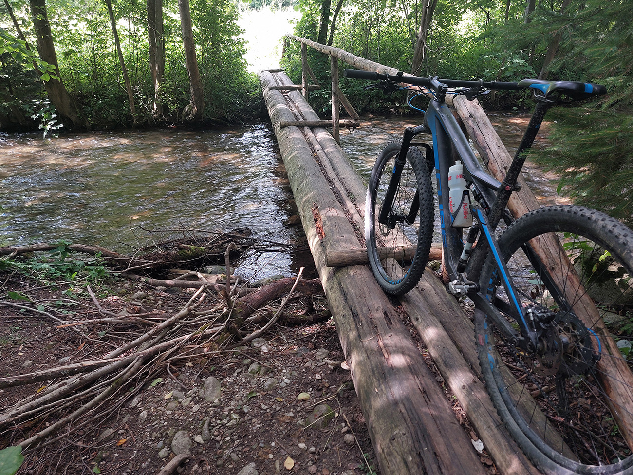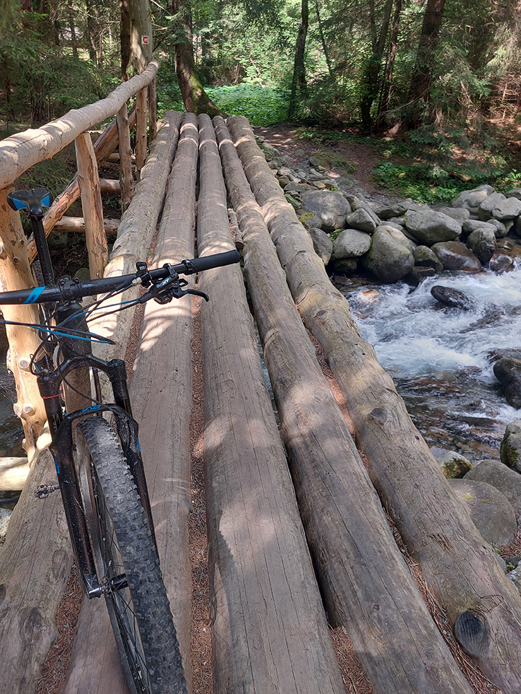 Ľupčianka je v ústí doliny už mohutnejšia, tak som pohrdol brodom, vyššie je mostík, na gpx-ku tú zachádzočku vidno. Pred Vyšným Sliačom som ochutnal miestnu minerálku – fajná je. No do bidónu som radšej netankoval, to až ďalej takú normálnu vodu, z výdatného prameňa Očianka tesne nad Štiavnicou.
