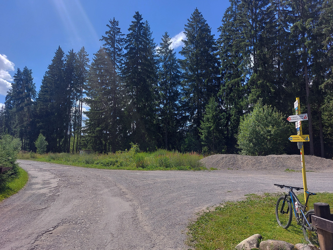Kopček Beňovo oproti vlekom na Opalisku som obišiel z juhu – nechal som sa zlákať jasnou cestou popod vlek, ale lepšie je to zo severu - netreba v závere tlačiť a sú tam aj výhľady. Potom už popod les do Iľanova je to jednoznačné a pohodlné. Tam začala v podstate posledná etapa, kde sa mi tie „preskoky“ z ústia jednej doliny do druhej dosť zlievali, ale inak to je až do konca veľmi pekné, a už nie moc strmé jazdenie.