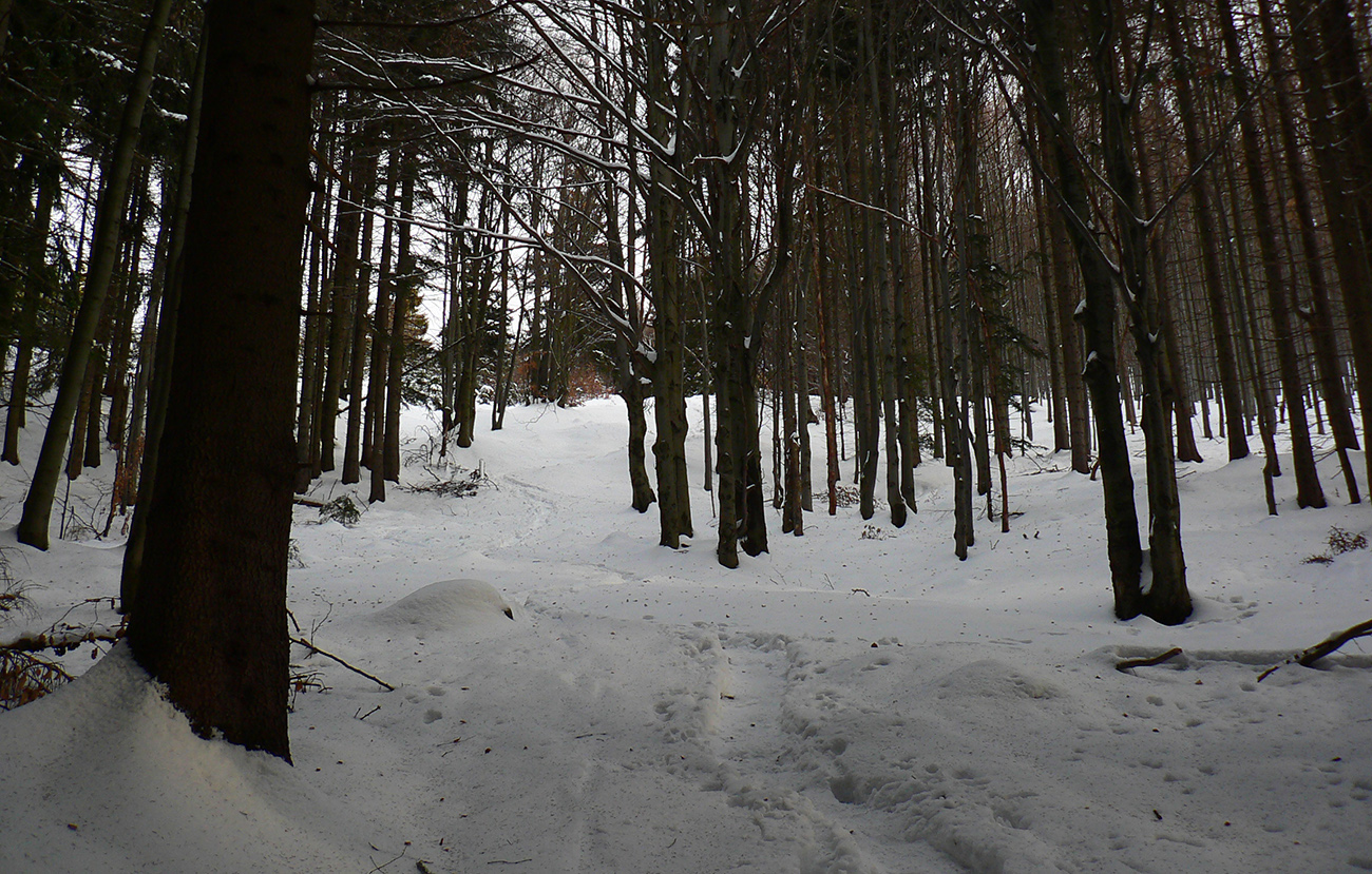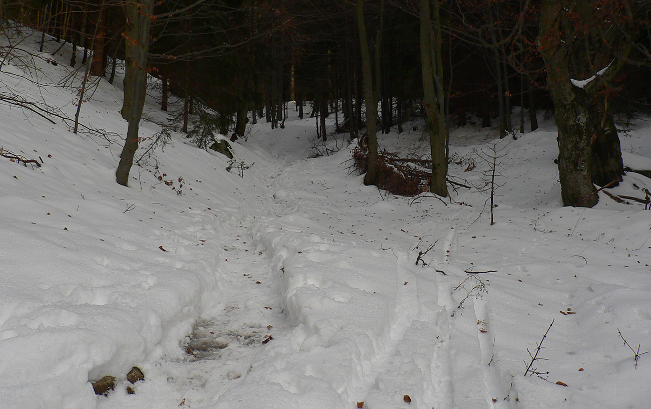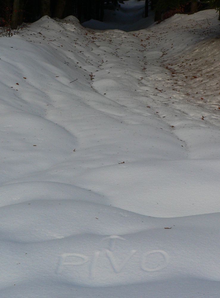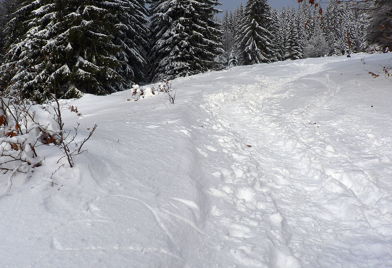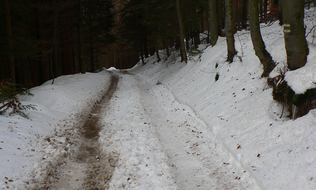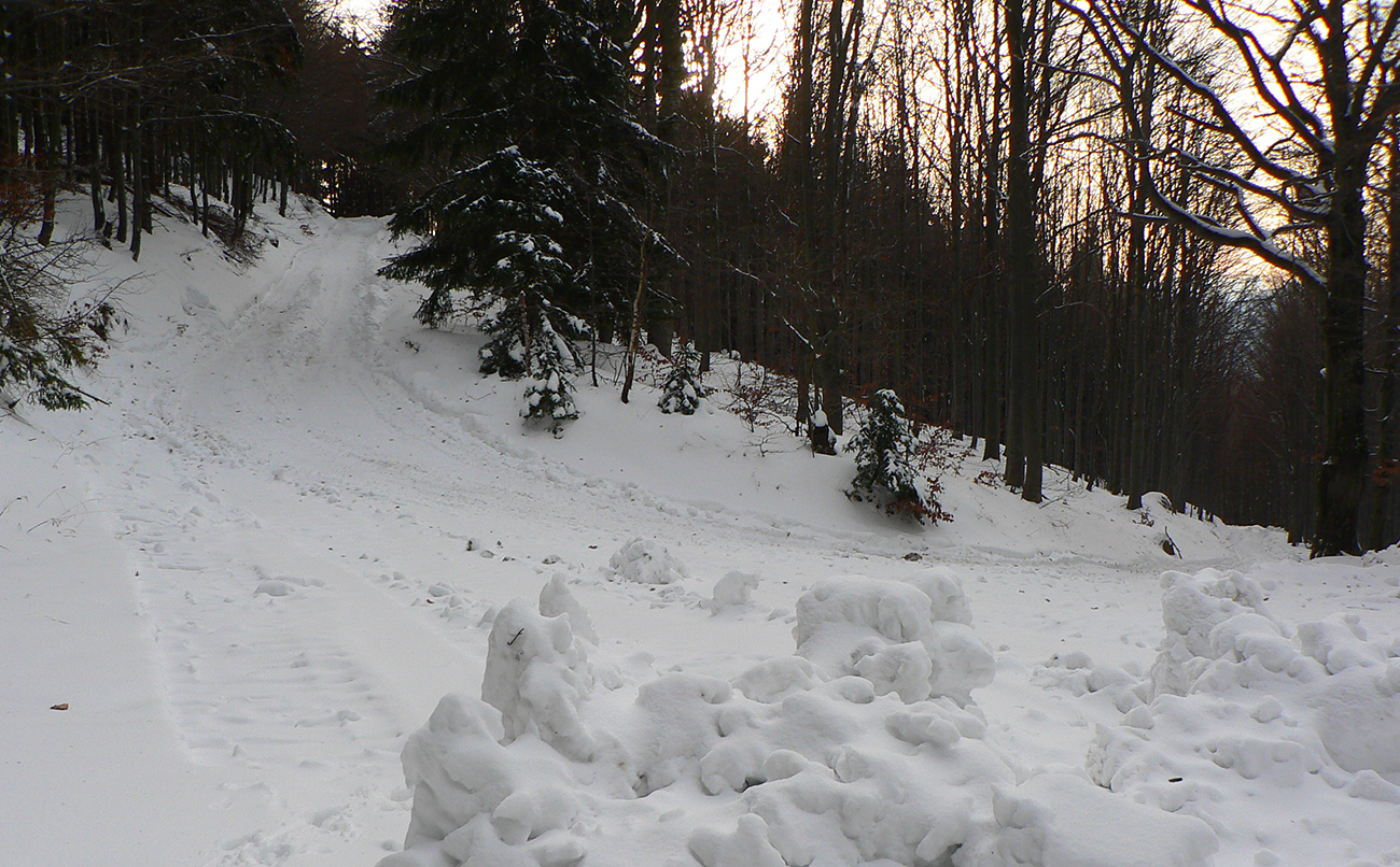 V lese nad Zajacovou je takých 15-20 cm a tiež ešte kôrka, ale dole lesom na lyžiach už by sa opatrne dalo bez prepadávania. Lyže kôrka podrží - jeden local hero už to dal! Nad drevoskladom v lese už je to na pohodu, ale len smerom hore. Lebo s rastom výšky pevnosť kôrky slabne a keďže podklad žiadny, oblúky smerom dole sú dosť problém. Lyžovačka dole Generálom len pre machrov a samovrahov – prepadačka do jafúr. Ale od chaty dole až pod Ploštiny je už cesta biela a ratrakom pekne prehrnutá, dá sa po nej.