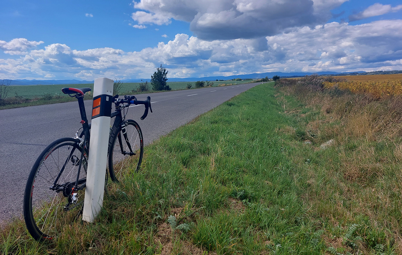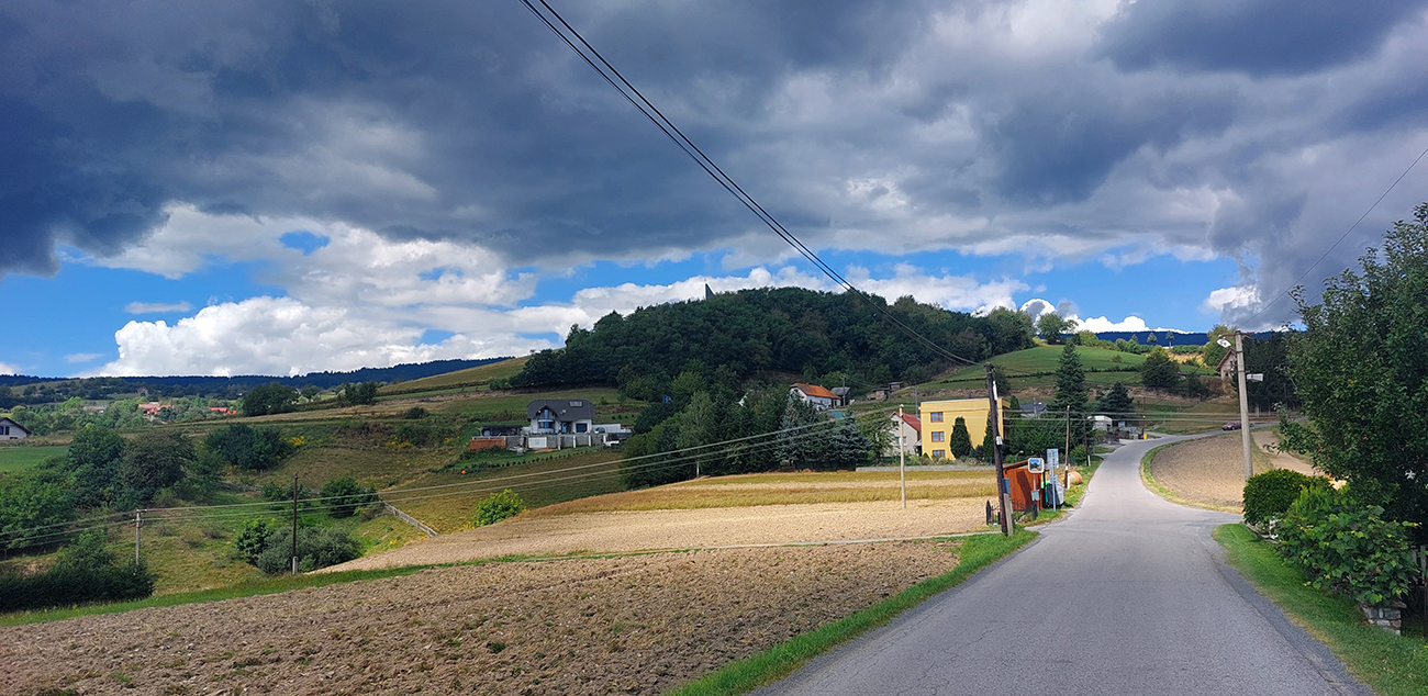 Ale už sa to míňalo – ako som sa v Zolnej otočil na sever, vietor prestal otravovať, odrezaný kopcami, a už sa dobre šliapalo pomedzi miestne pamiatky, a znovu prevažne po nových asfaltoch. Aj keď mierne do kopca a aj keď nohy už posielali hore do riadiacej jednotky signály, že začínajú mať dosť.