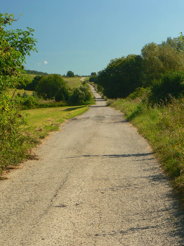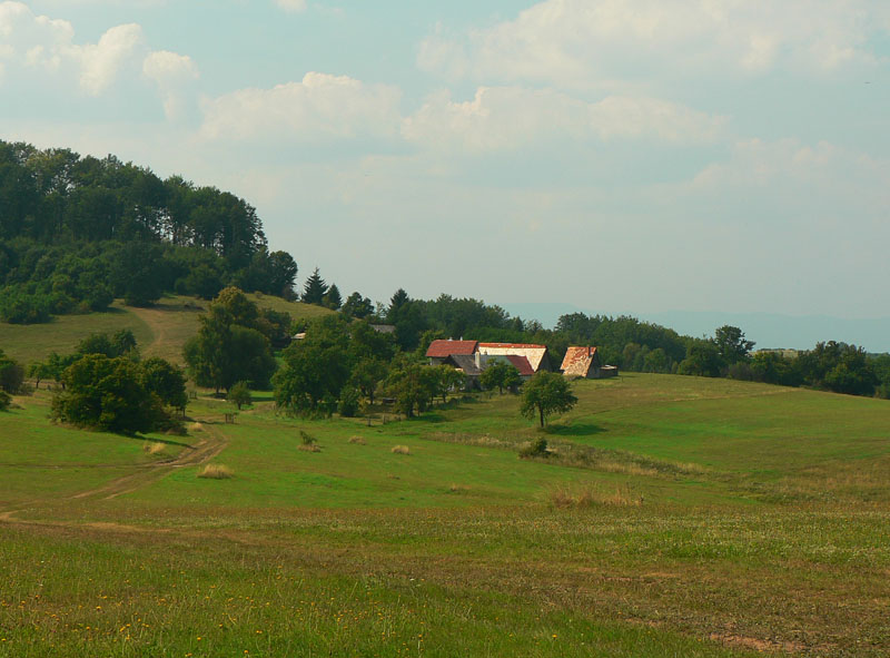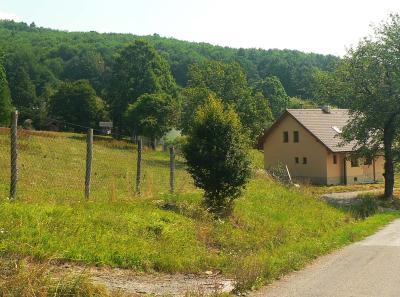 Kráčam z kopca ešte po asfalte smer Pajta, kde majú lesníci obory pre vysokú. Možno z toho raz spravia cirkus pre turistov ako v zubrej obore nad Topoľčiankami. Cez Kráľovu púť a Macákovú na Suché lazy vedie cesta v príjemnom tieni okrajom lesa s výhľadmi na lúky a polia. Len záverečný úsek na Bugárovo je strmo do kopca a v dolnej časti po lúke, s pražiacim slnkom za chrbtom nič moc. Ešte vymyslieť ako sa dostať cez dolinu do Hrochote.