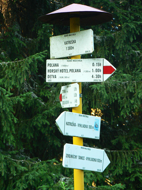 Všetko sa to dá zvládnuť aj ako „poldenná“ túra, teda za nejakých 12 hodín, možno aj skôr. Jasné že bez spomenutých zachádzok a hľadania napríklad najväčšieho buka v CHKO, ale to by boli skôr preteky ako turistika. Pozor na mapu – v starších vydaniach nie sú ešte trasy s miestnym značením, ale nie sú ani na stránke turistickmapa.sk a nenašiel ich ani hikeplanner na stránke hiking.sk (august 2009). Našiel som ich ale v 3. vydaní mapy VKU č. 133 (Poľana) z roku 2002. Tá červená z Hrochote je isto lepšie riešenie ako šliapať na Kyslinky dolinou po asfalte pomedzi kamióny s drevom.