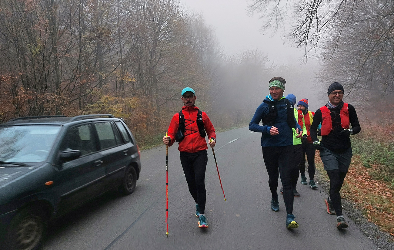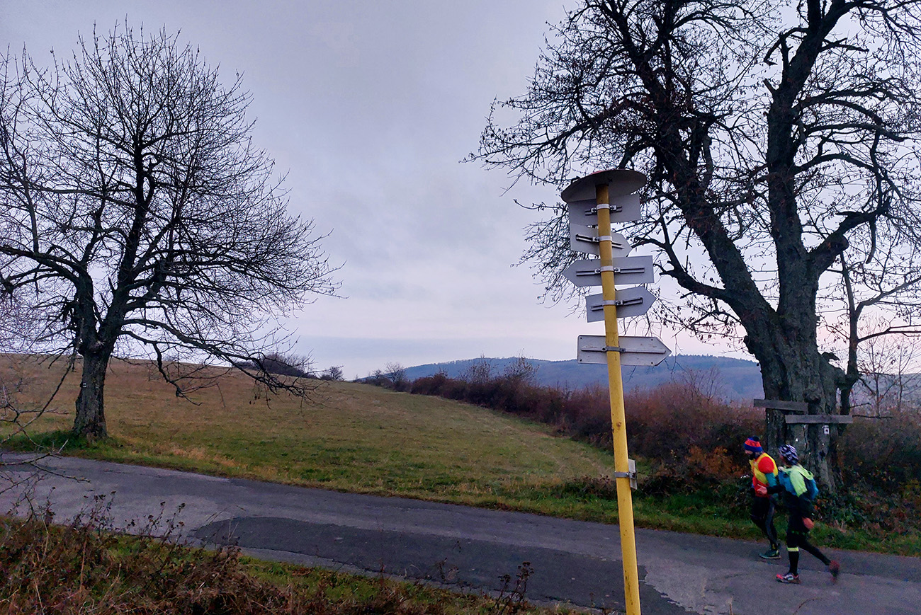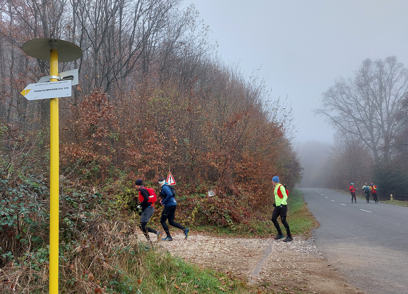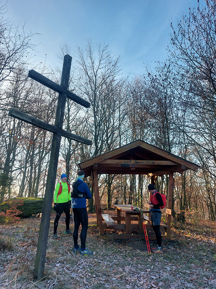 Cieľ Javorníckej stovky – Kuko s Náčelníkom stoja bokom a kujú dáke pikle. Bulvár ide akože náhodou okolo, podozrivo stíchnu... Bulváru to samozrejme nedá, šmejdí naokolo, naťahuje uši, nedá sa odohnať, a tak po chvíli už má pre istotu pozvánku „vo vrecku“. Na 16. november do Podkriváňa, skade vraj odštartuje pokusný, nultý ročník novej slovenskej ultraakcie. S parametrami „čosi cez 50 km a čosi cez 2000 výškových“ je to síce len detská trať, ale s jej krajinárskymi kvalitami bude isto kandidovať do zoznamu obľúbených. S podporou SUT to tiež bude isto na špičkovej úrovni. A ešte keď Kuko ozaj tie langoše napečie, ako sľubuje... Toľko pre budúcu históriu, aby sa raz vedelo, ako to začalo, a pome behať – Kuko napozýval z celého Slovenska, nakoniec vraj ale dominovali výhovorky a mrazivé ráno pred obecným úradom (jasno, -5) našlo na parkovisku dokopy osem pokusných králikov. Z toho štyroch z Turca – len aby sa vedelo, kto si zaslúži za tú obetavosť zľavy na štartovnom! Z tých ôsmich jeden vraj čerstvý otec, ktorý zmizol vpredu, že musí byť rýchlo doma (dal to za šesť hodín). Zvyšok sa pred ôsmou vybral hore dedinou, družne vykecávajúc. Takže nasleduje správa pre ultrahistorikov, ako to pri pobehovaní Timraviným krajom vyzeralo. Akurát, že bulvárne hodinky zaštrajkovali a počítať začali až od Divína, takže gpx (hore) aj mapka sú len požičané: