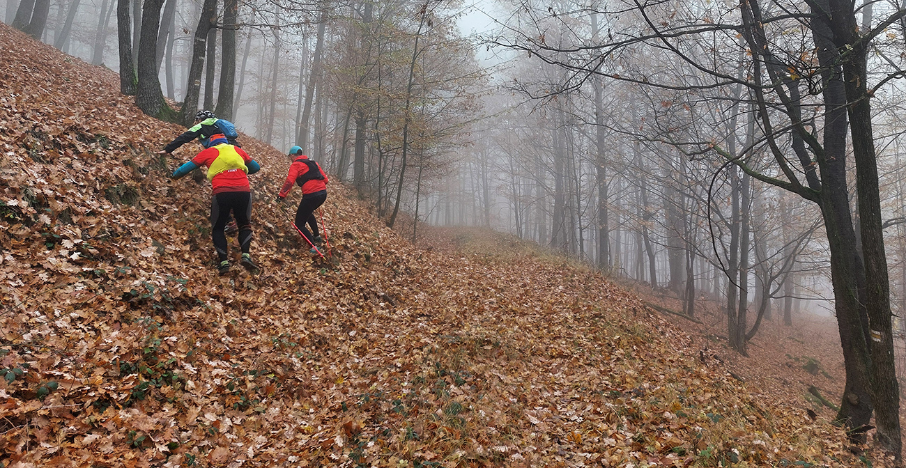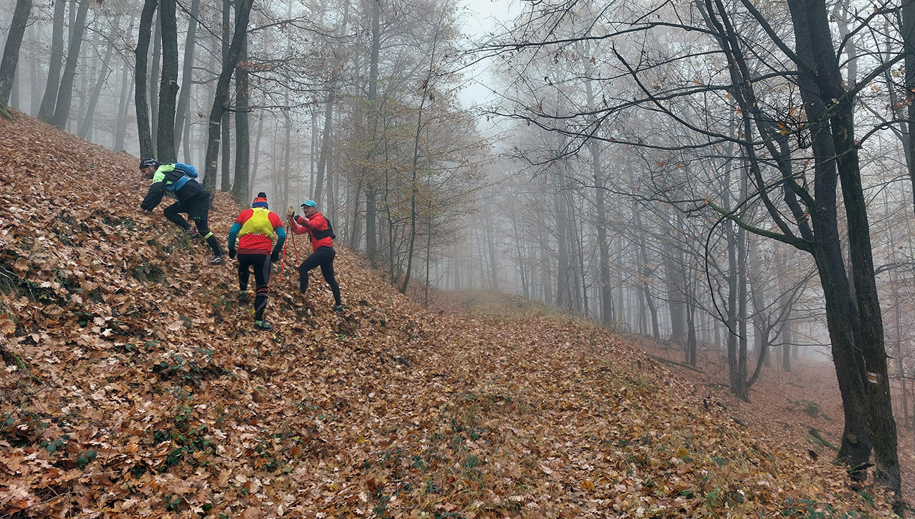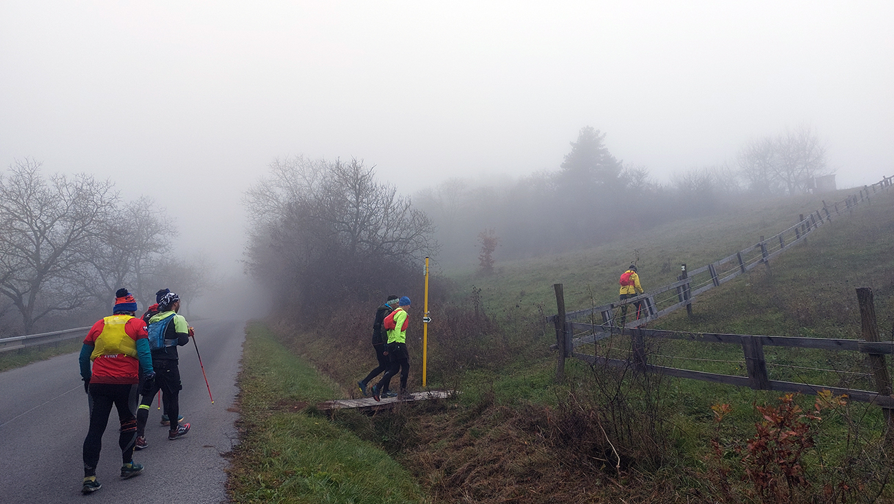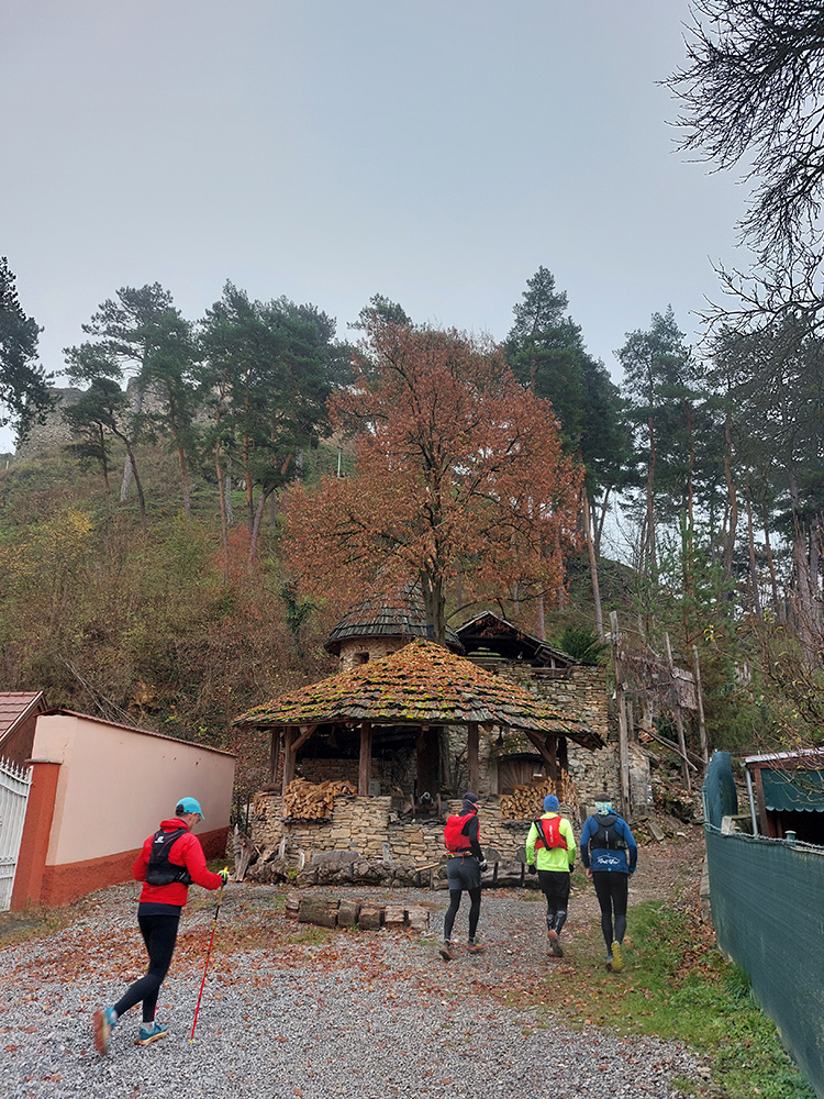 Okolo Timravinej fary viedla trasa len tak zozadu po značkách. No chcelo by to hádam z opačnej strany, nech má to ultrabehanie aj nejakú národopisnú pridanú hodnotu. Potom útek z dediny a prechod na modrú farbu znamenal na úvod ešte trochu asfaltu, ale najmä strmý zostup hmlistým lesom do Tuhára, aj s technickými prídavkami v podobe preliezania zvodidiel.