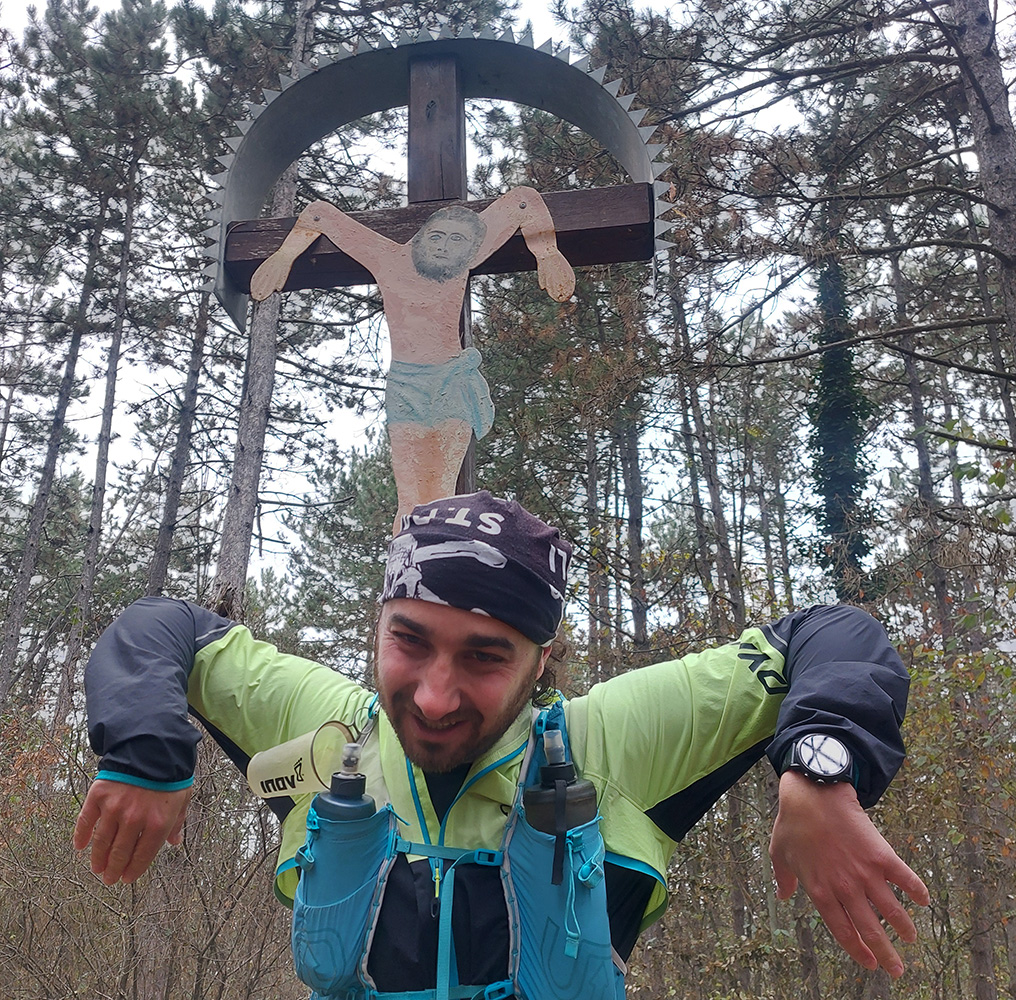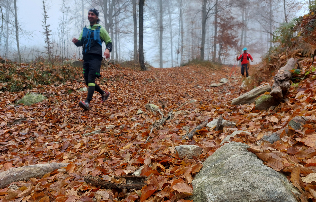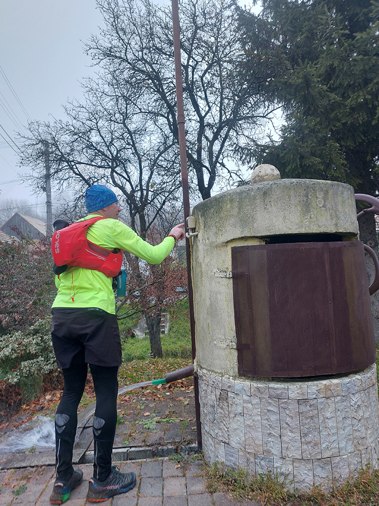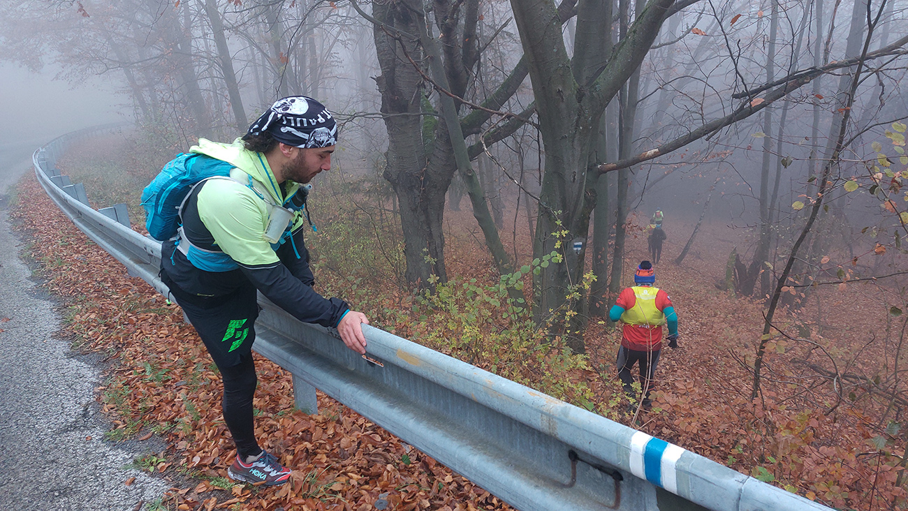 Okolo Timravinej fary viedla trasa len tak zozadu po značkách. No chcelo by to hádam z opačnej strany, nech má to ultrabehanie aj nejakú národopisnú pridanú hodnotu. Potom útek z dediny a prechod na modrú farbu znamenal na úvod ešte trochu asfaltu, ale najmä strmý zostup hmlistým lesom do Tuhára, aj s technickými prídavkami v podobe preliezania zvodidiel.