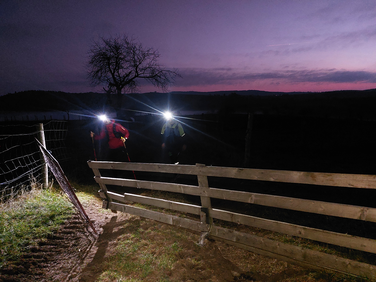 Čelovky na hlávky, bráničku už nebolo treba preliezať ako ráno, dala sa obísť. Potom posledná chvíľa potácania hrboľatým lesom, strmo hore na vrchol Javora - a zhora už ďaleké pohľady do tmy pod Poľanou, kde sa jagali hviezdy rozsvietených dedín, osád aj samôt. No romantika ako bič, takto na záver!
