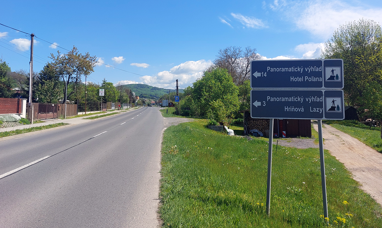 Pri posledných domoch miestnej časti Priehalina odbočka doprava, zas do strmého. Šípka navedie, značka snehových reťazí pomôže si uvedomiť. Cesta vchádza do lesa a asfalt je zrazu čierny a hladký. Za horúceho dňa poteší poriadny tieň.