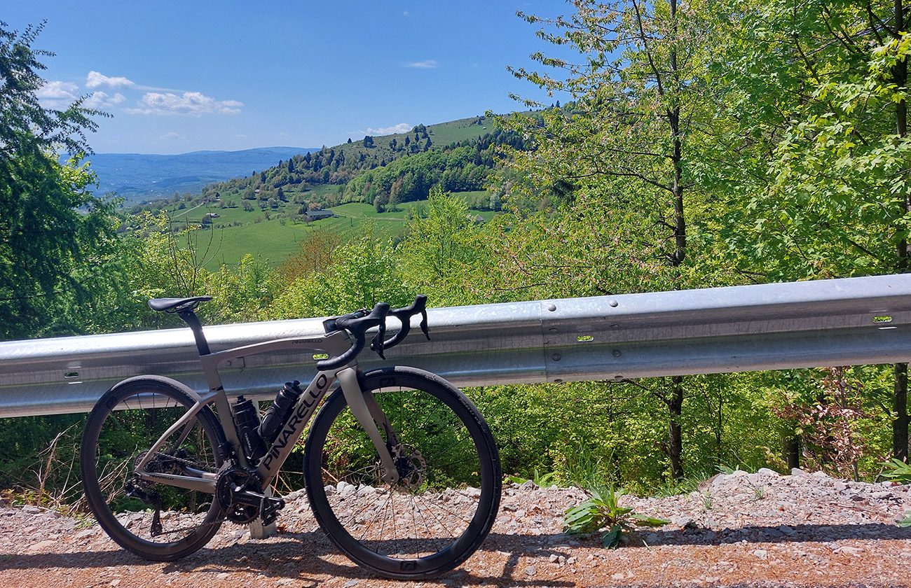 Cesta sa ešte trochu povlní hore – dole, a aj klesne na križovatku, kde sa sprava pripája ten druhý variant výšľapu od vodárenskej nádrže. Ten je pod križovatkou fajne výživný. V križovatke ale prudká zákruta doľava a tam práve začína príjemný, nie veľmi strmý, no najmä rovnomerný sklon.